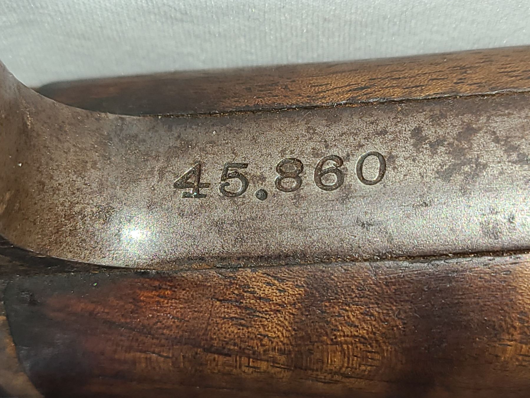The barrel is 23 1/2 inches long. The bore is dirty but riflling still present and visible.