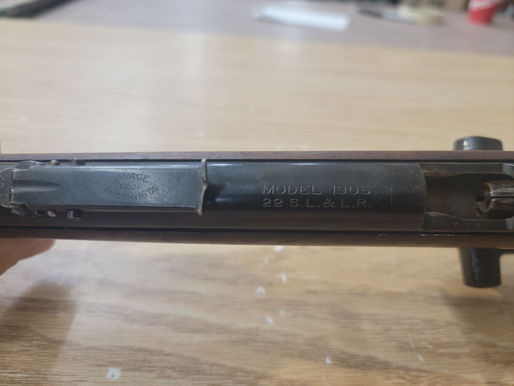 Savage Model 1905 .22 S.L. & L.R. bolt action rifle (no visible s/n)