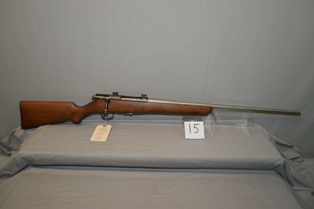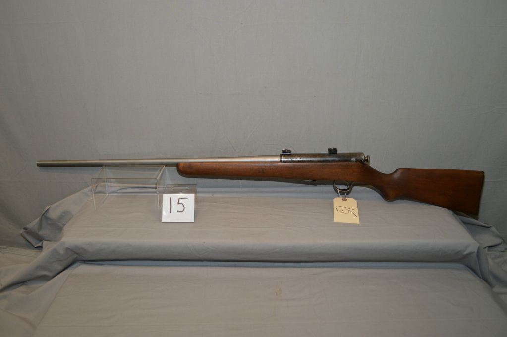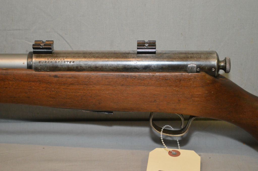 Savage Model 20 Super Sporter . 250 - 3000 cal Mag Fed Bolt Action Rifle w/ 26" stainless bbl note: gun re-barrelled by Ron Smith [ stainless barrel, no sights but fitted with scope bases, receiver has fading blue finish, pistol grip walnut stock, w/ sling holes, metal butt plate ] Ser # 7454