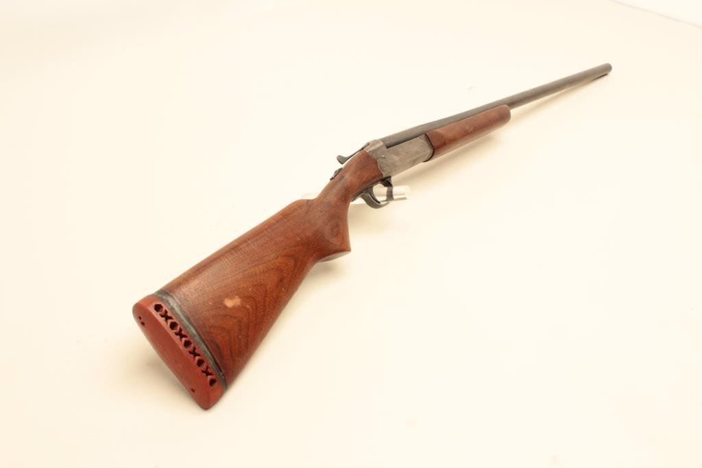 case hardened finish, wood stocks, no visible S/N, in overall good + condition with considerable original finish remaining, very good bore, crisp action and good markings, good wood overall with added hard rubber butt pad and spacers. (Modern). Est.: $150-$300.