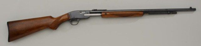 Savage Model 29-A pump action rifle, .22 short, long and LR cal., 24” round barrel, blue finish, c