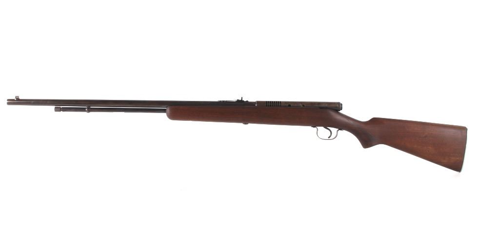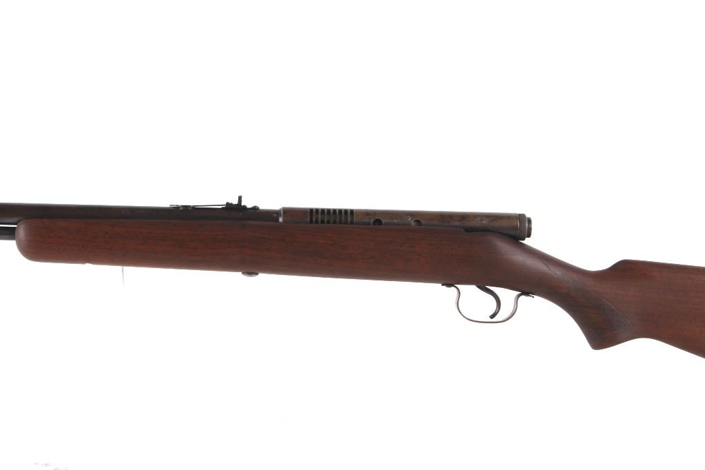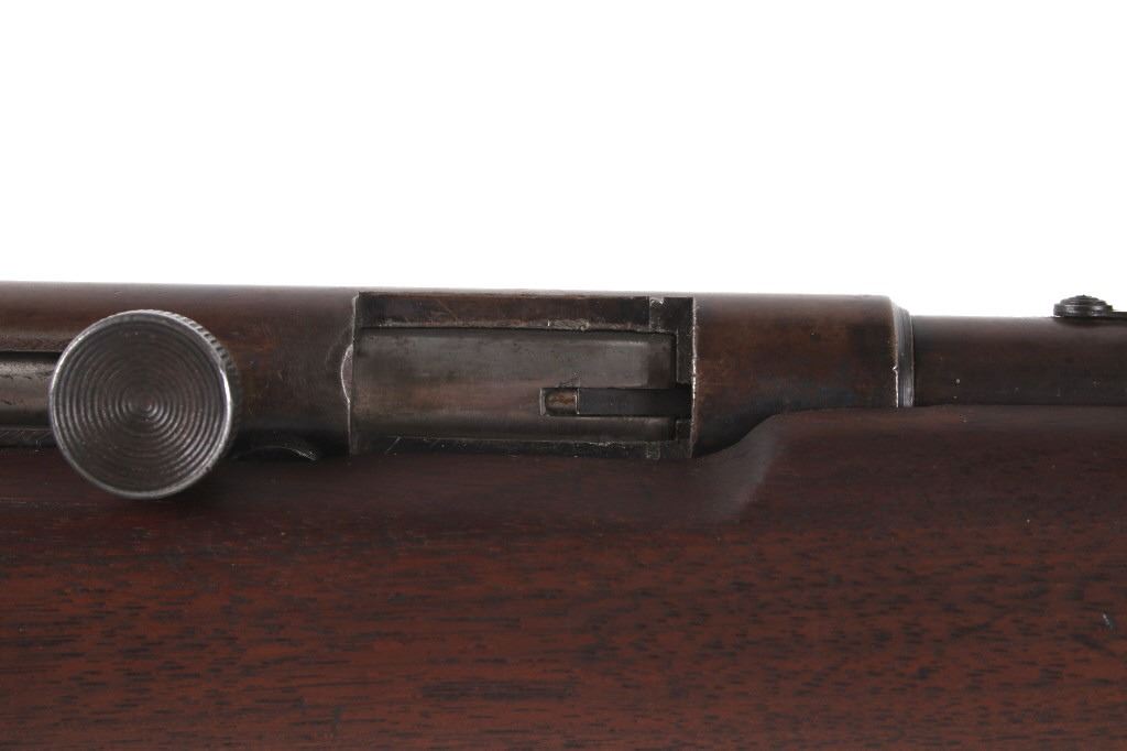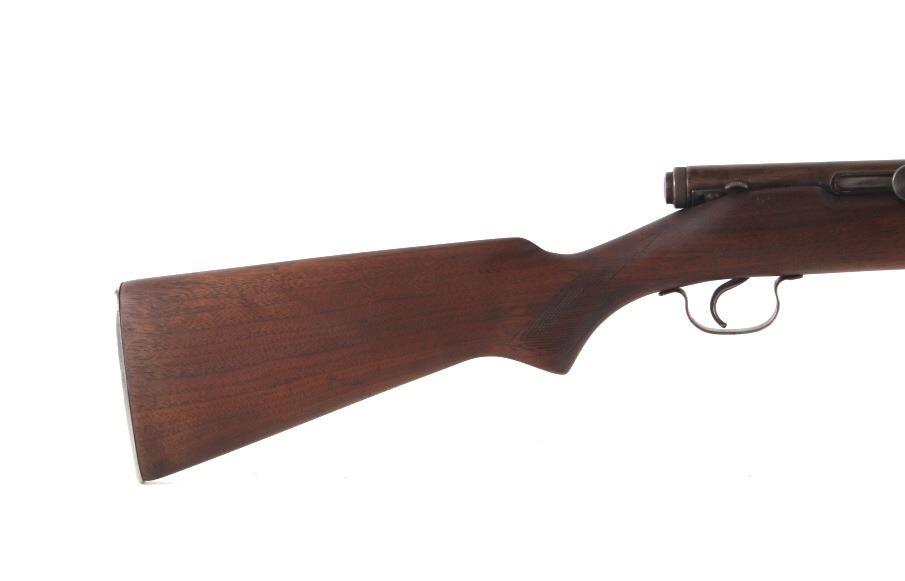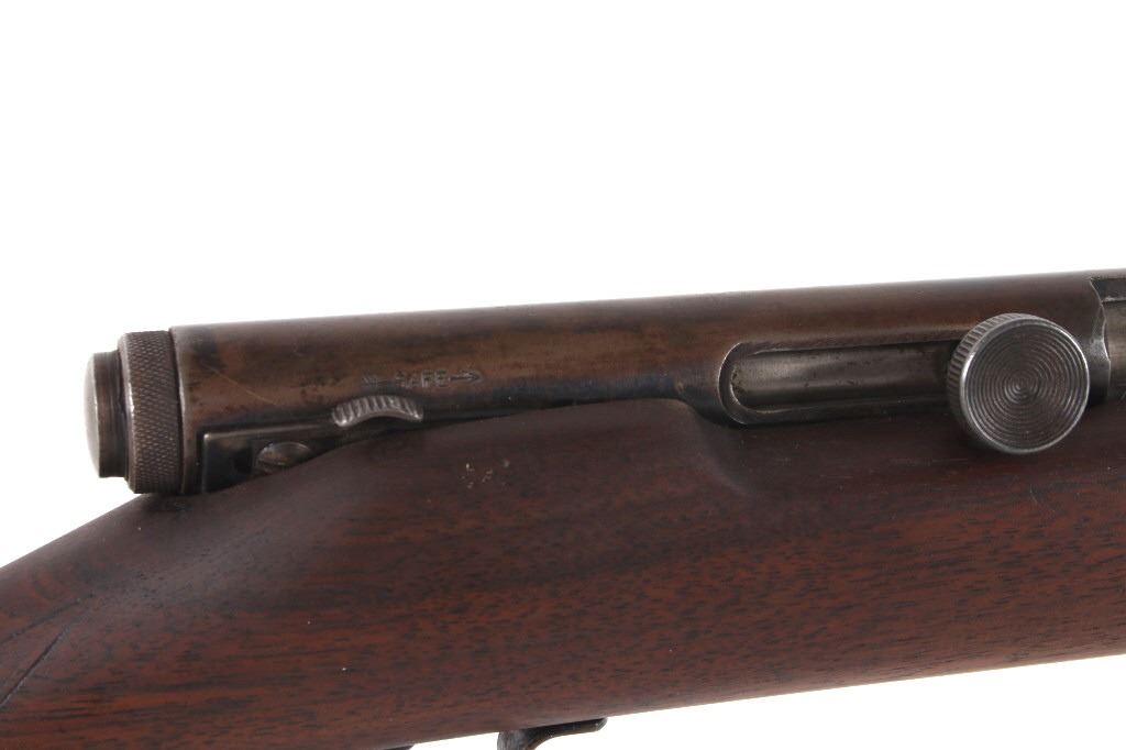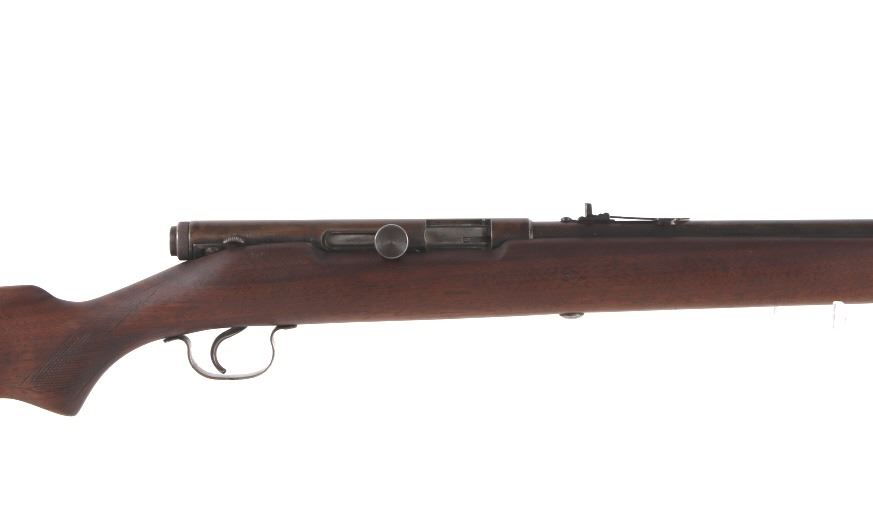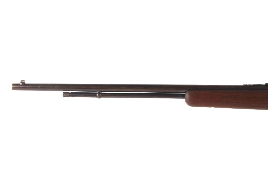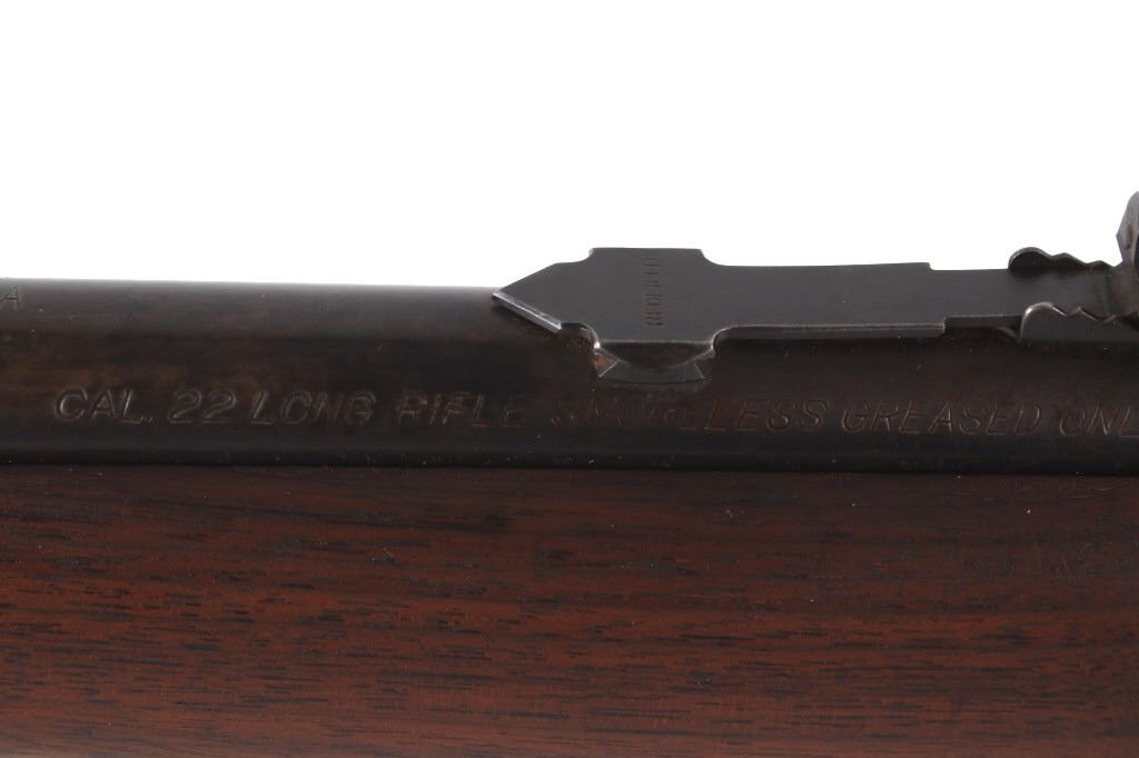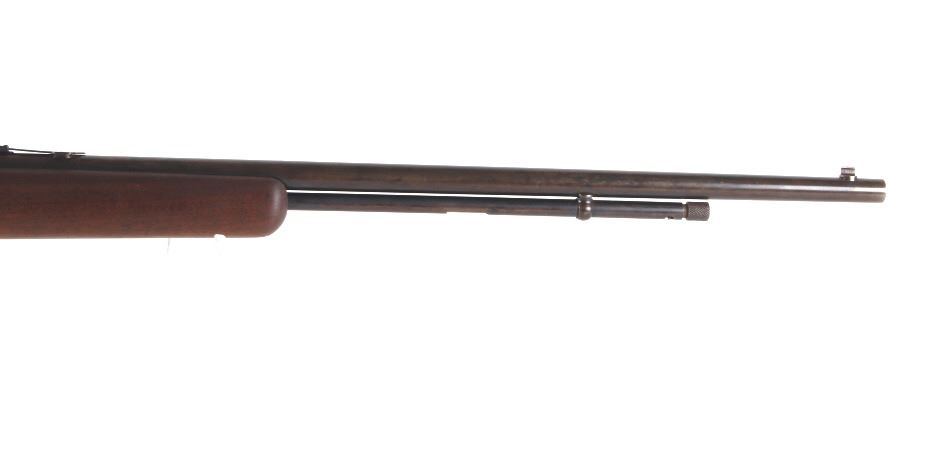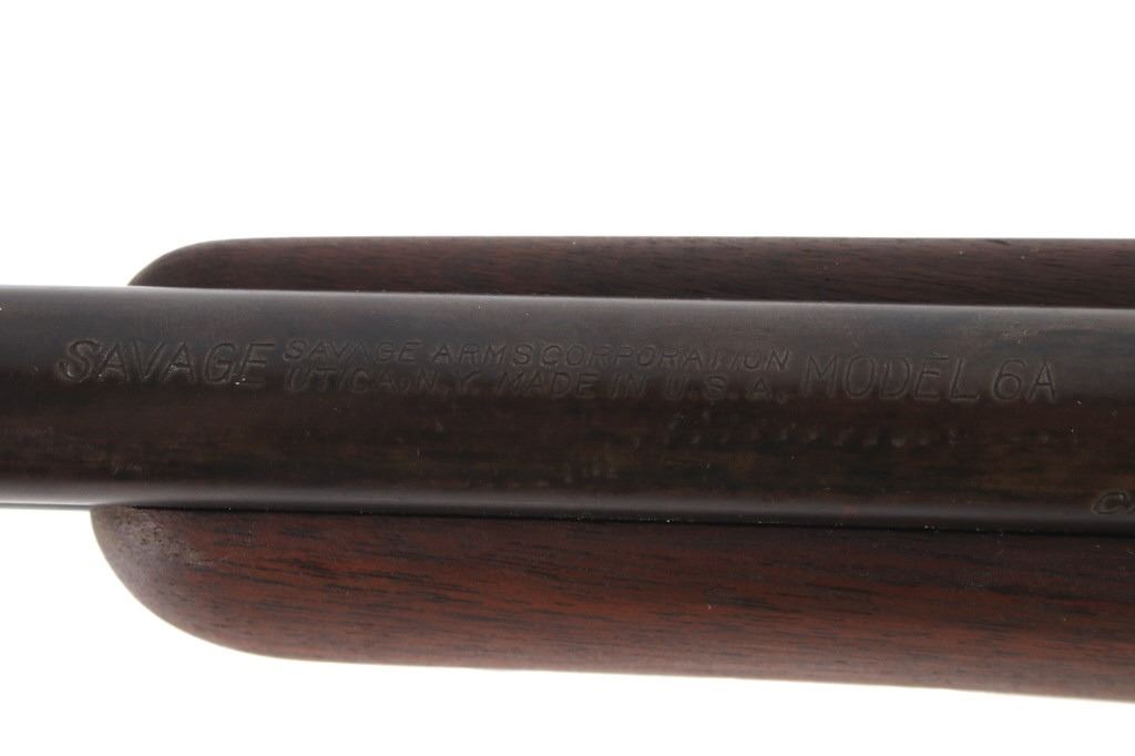 Featured in this lot we have a Savage Model 6A semi automatic rifle chambered in .22 Long Rifle. The rifle shows a 24" long round barrel, walnut stock, under barrel tube magazine, adjustable rear sight, and semi auto action. The rifle is marked across the top of the barrel reading "SAVAGE SAVAGE ARMS CORPERATION UTICA, N.Y. MADE IN U.S.A. MODEL 6A" with the left side of the barrel marked "CAL. 22 LONG RIFLE SMOKELESS GREASED ONLY". The rifle shows good mechanical condition with a smooth action, crisp trigger, and working action lock. The rifle shows good condition overall with some wear due to age and a warm patina. The rifle weighs 6lbs 2oz. Serial Number: No Serial Number. This firearm qualifies as a Curio & Relic firearm, and requires FFL Transfer or NICS Background Check.