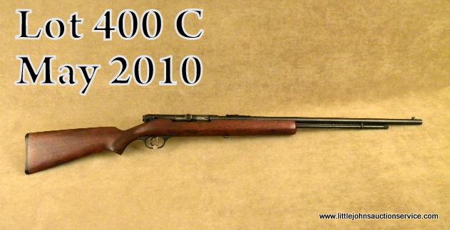 Savage Model 6A semi-auto rifle, .22 short, long and LR cal., 23” round barrel, blue finish, checkered wood stock, #NVSN. This gun is in overall very good condition showing the majority of its original black finish, very good bore,action and markings; very good wood, brass feeding magazine and black plastic butt plate. Est.: $75-$125.