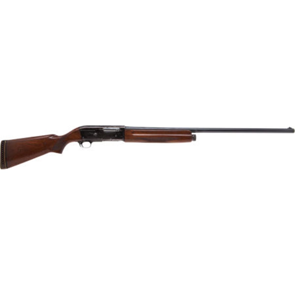 Savage Model 775A Semi-Automatic Shotgun. Serial no. 232790, 12ga (2 3/4), 30-inch barrel with ramped brass bead front sight. Blued finish. Hunting dog etched panels on both sides of receiver. Figured walnut stock with checkered forearm and pistolgrip. Rubber Pachmayr recoil pad. Condition: Good. Retaining approximately 60-70% original blue finish, the balance thinning. Metal surfaces with moderate to heavy wear throughout with scattered patches of frosting. Stock has been re-varnished. NRA FIREARMS FOR FREEDOM PROGRAM