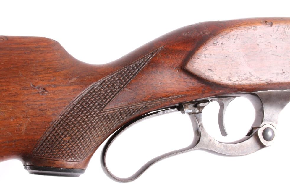 This is a Savage Arms Corporation Model 99 lever action takedown rifle manufactured in 1929. The rifle is chambered in the .30-30 caliber. The rifle features deluxe solid wood stock with factory checkering. The rifle is in good condition. It measures 41.5" long. Serial number 320350.