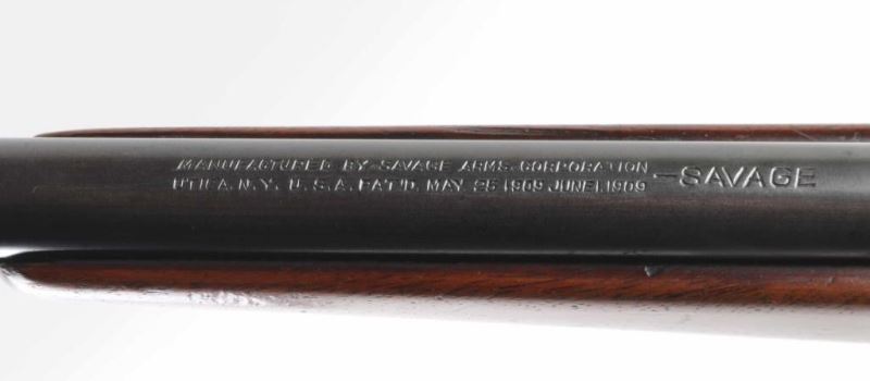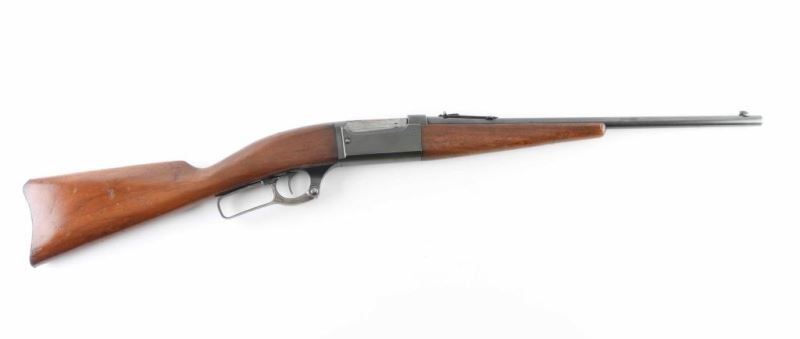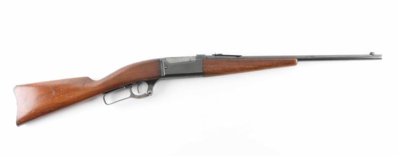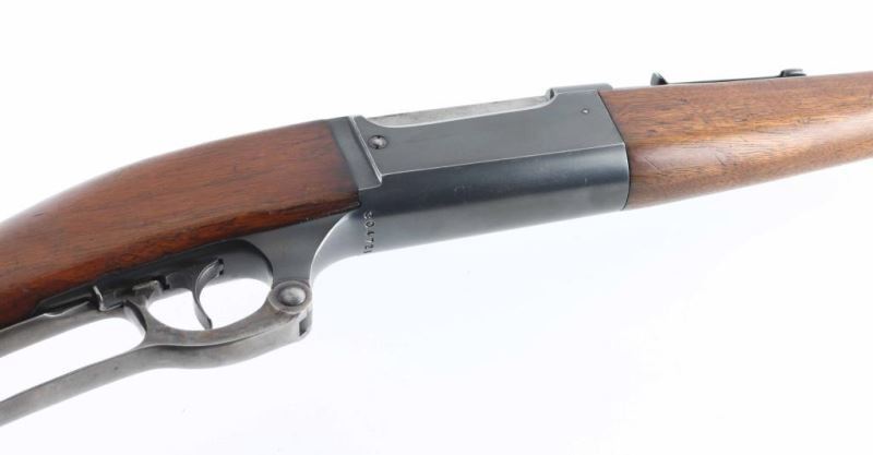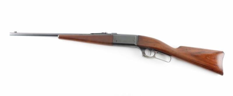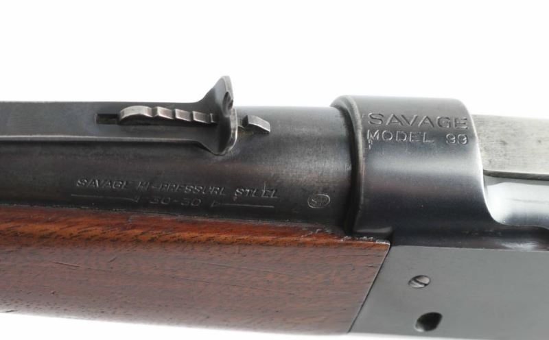 '99-H Carbine' Lever action rifle manufactured circa 1927. Features blued finish, case color finger lever, two piece smooth wood stock with straight wrist, smooth steel buttplate, 20" barrel, blade front sight, sporting rear sight, fixed rotary magazine with brass cartridge counter, safety/lever lock behind trigger, cocking indicator. Bore is good to very good condition, a bit frosted in appearance. Retains 80% blue, bare metal on edges and near muzzle, with scratches and scuffs. Bolt is bare metal, appears cleaned of patina. Finger lever has mostly faded to a bright silvery color with some case colors retained on sides of lever. Wood is very good with dents & scratches, varnished, some loss of finish on comb. Condition is NRA Very Good *** C&R Firearm ***