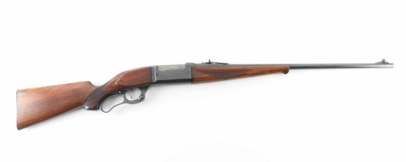 Lever action rifle manufactured circa 1941. Features re-blued finish, wood forend with schnabel tip, wood shoulder stock with curved grip, checkered panels at wrist & forend, serrated steel buttplate, 24" barrel, blade front sight, sporting rear sight, fixed rotary magazine with brass cartridge counter, safety/lever lock behind trigger, cocking indicator. Bore is very good condition. Retains 95% dark even blued re-finish, with few noted areas of old pits under the new blue, and some slight dishing of letters at markings, scratches and scuffs to barrel. Bolt has bright jeweled surface. Wood is good or better condition, varnished, with dents & scratches, epoxy filler repair at left of upper tang. Condition is NRA Very Good (refinish) *** C&R Firearm ***