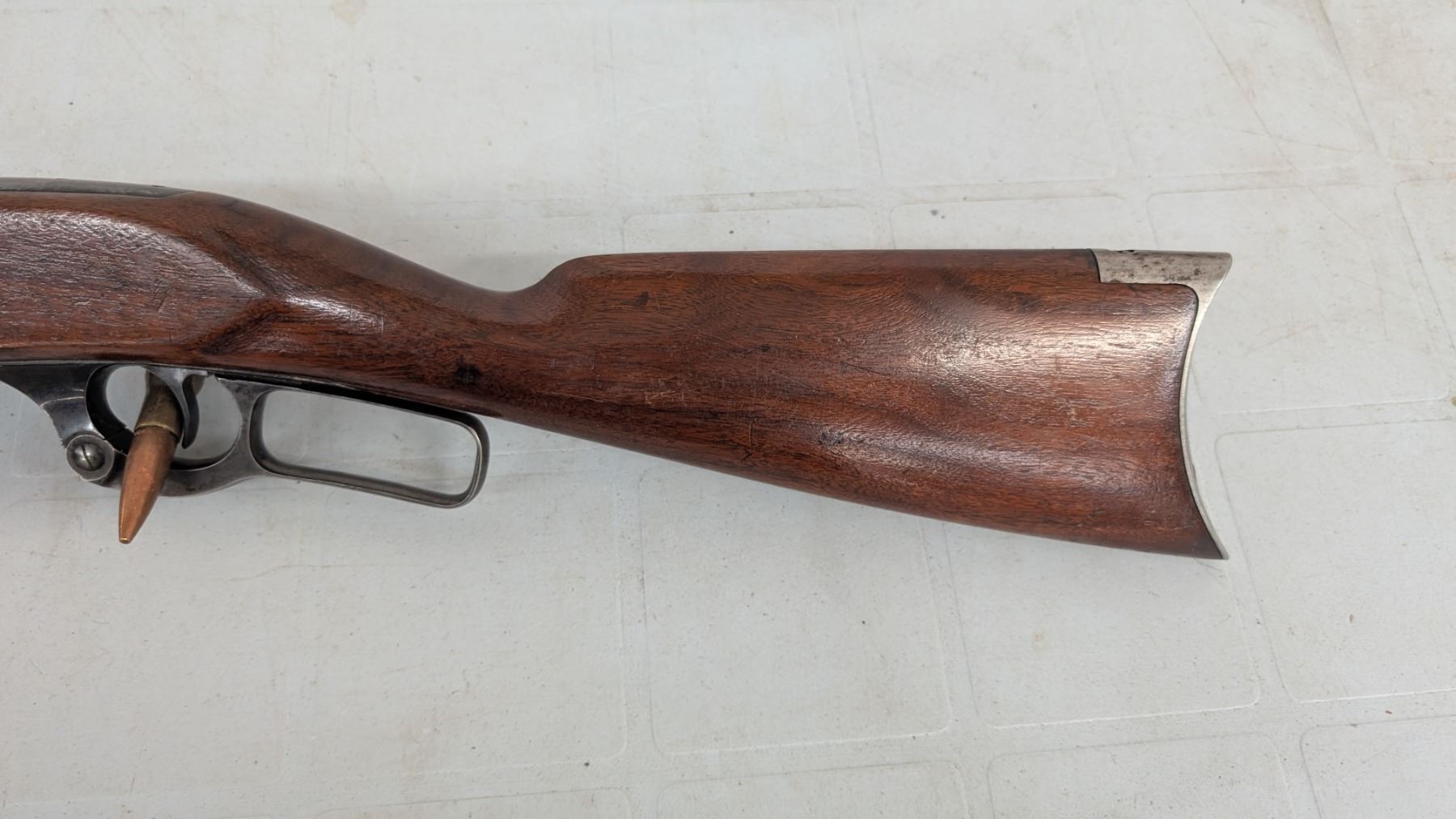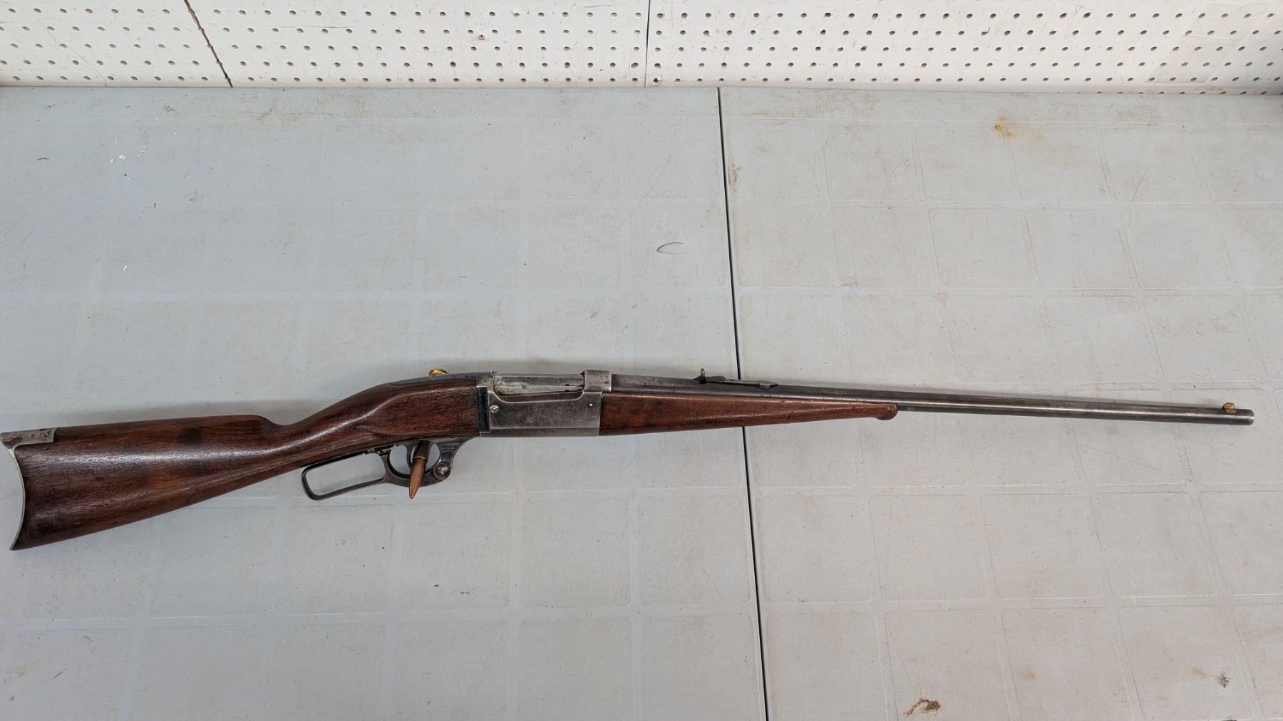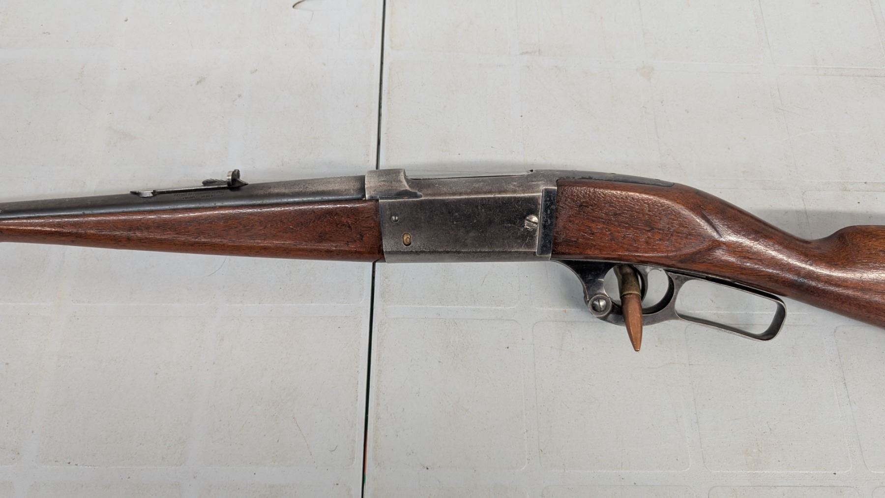 Lever action. Bore is shiny with lots of rifling. lots of blue still present in protected areas. Trigger tang safety model brass rotary magazine. 26" barrel. Stocks are in excellent condition.