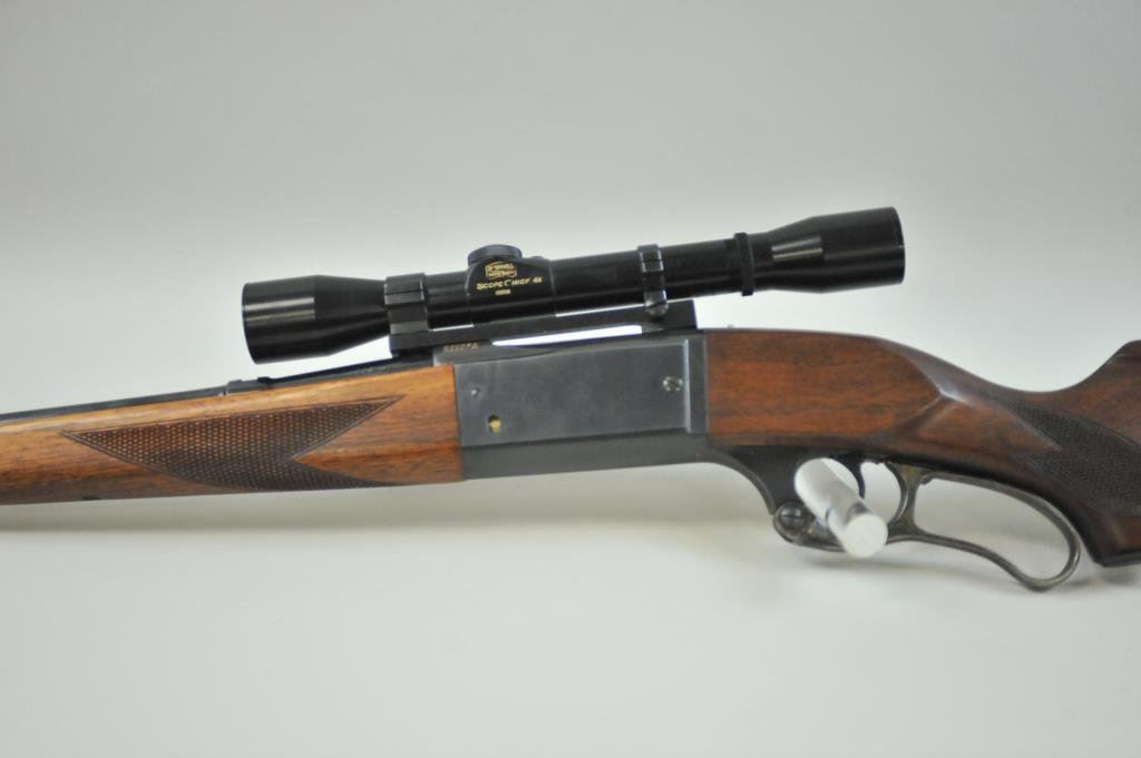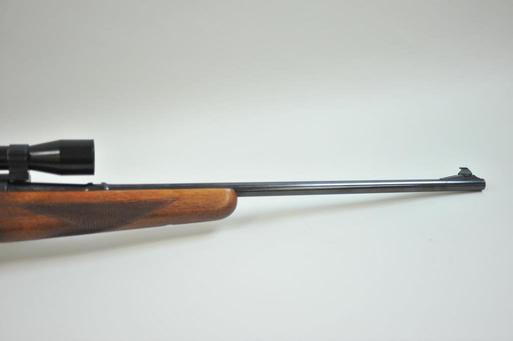 takedown with cartridge counter window and 22” barrel along with engine turned bolt. Very good plus condition with 95%-98% blue. The stocks have been lightly re-finished. The butt has been shortened slightly with thin pad added. 4x Chief scope on Redfield mounts. Excellent action and bore. (C&R) Est.: $350-$700