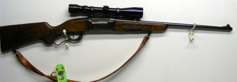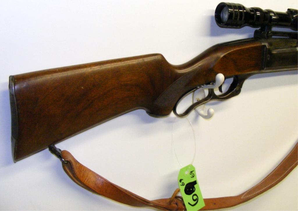 Savage model 99 lever-action rifle in .308 Winchester and with 22 barrel. Leather sling and older Redfield 3x9 scope.Action and bore are good to better. This is a classic in a great caliber. Serial is 914798."