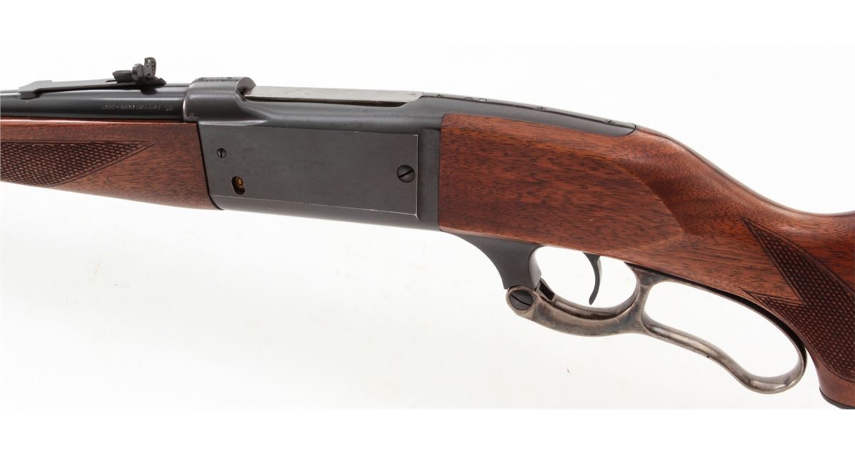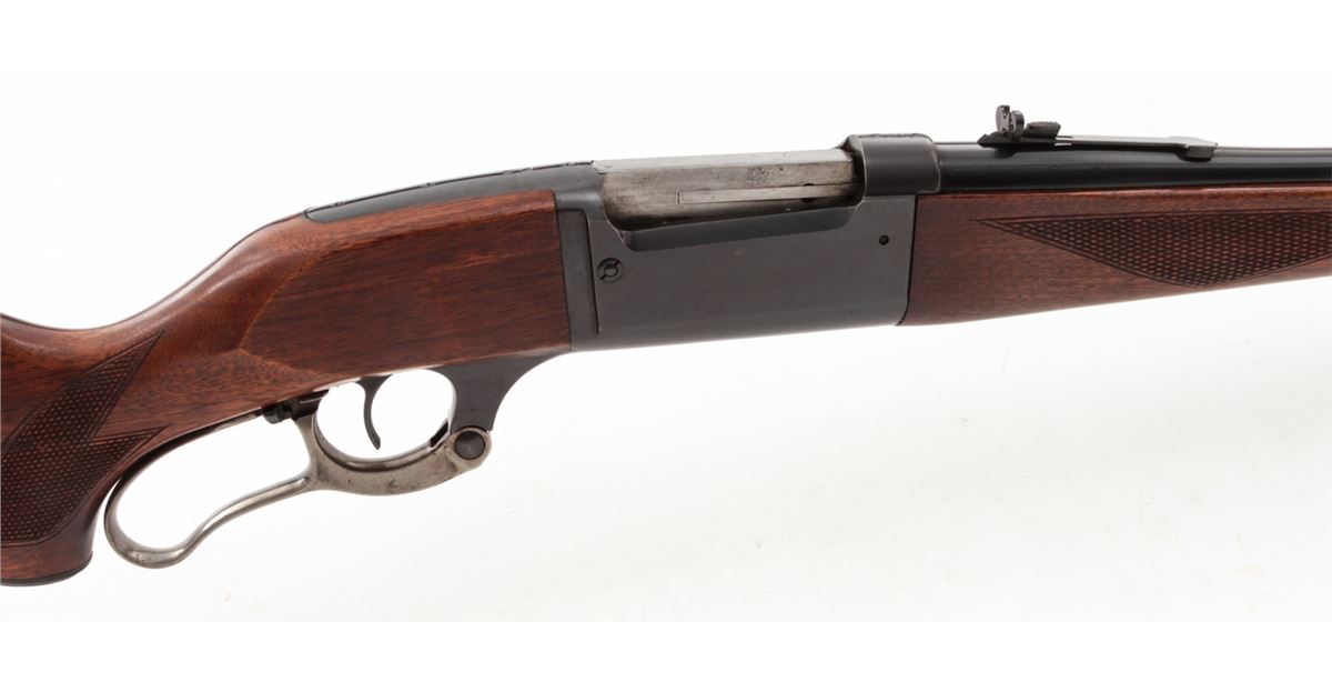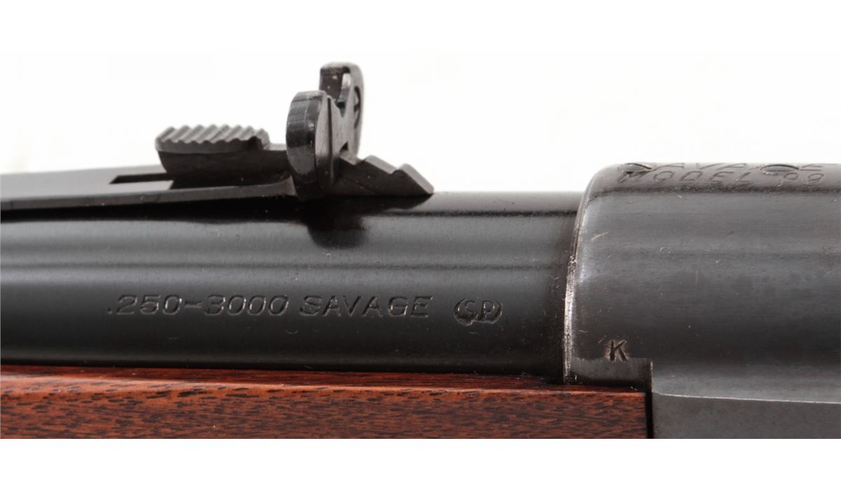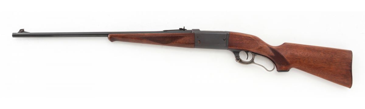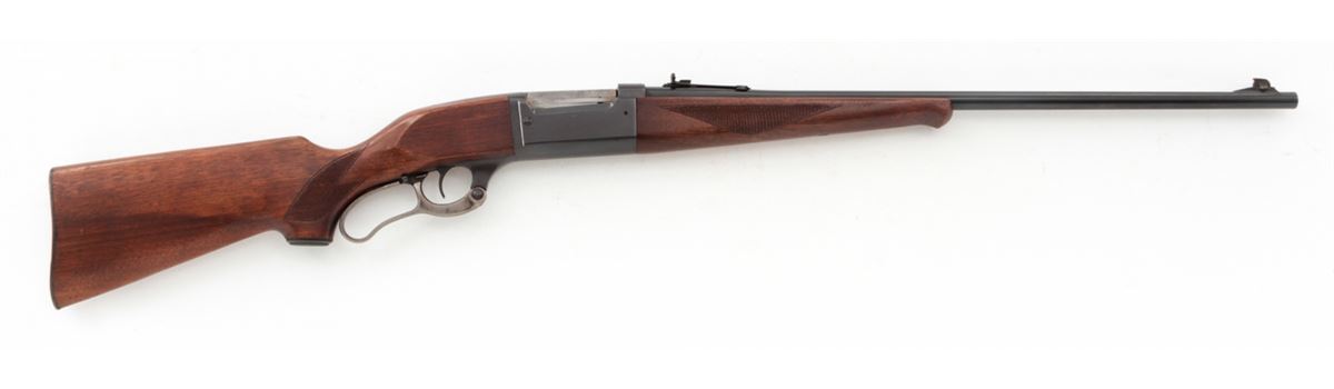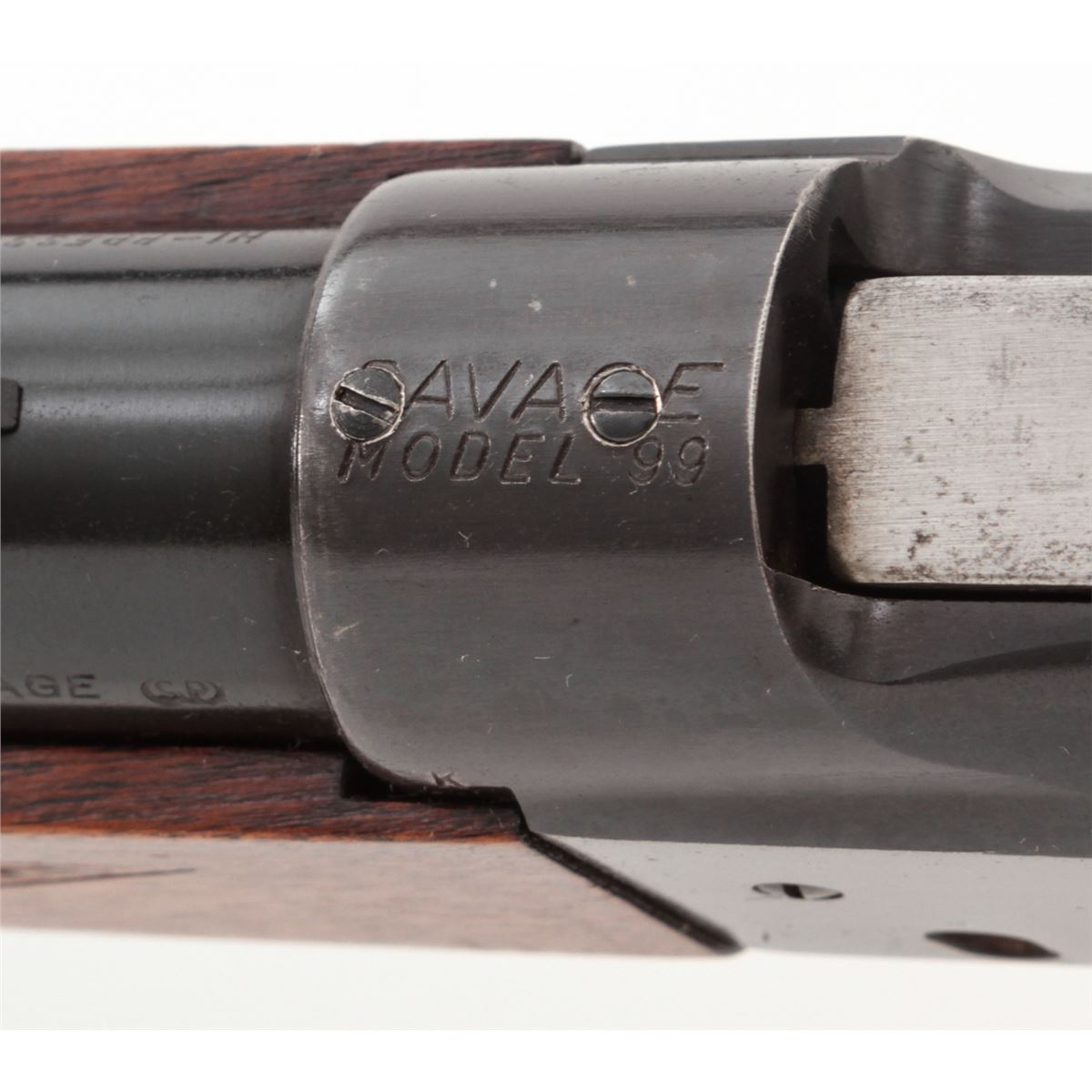 Savage Model 99 Lever Action Rifle, #697654, .250-3000 cal., 24'' barrel, blue finish, checkered walnut stock and forend, with standard rear and copper bead front sight, cocking indicator and cartridge counter. Condition is fine to near excellent retaining approx. 98% blue. Top of receiver has been drilled and tapped for scope; holes have been neatly filed with correct screws. Stock and action are crisp, bore is mirror bright. Est.: $450-$600. (C&R)