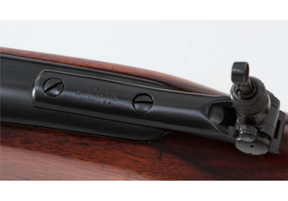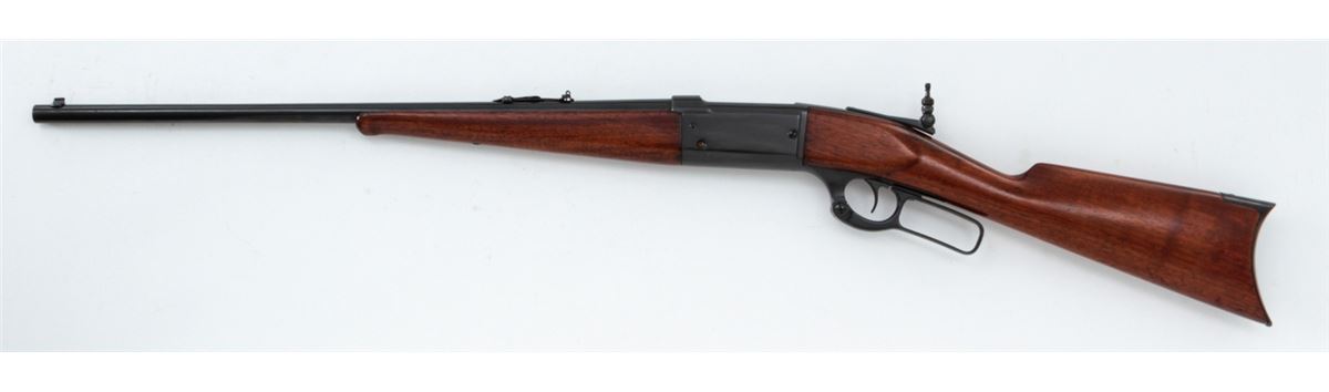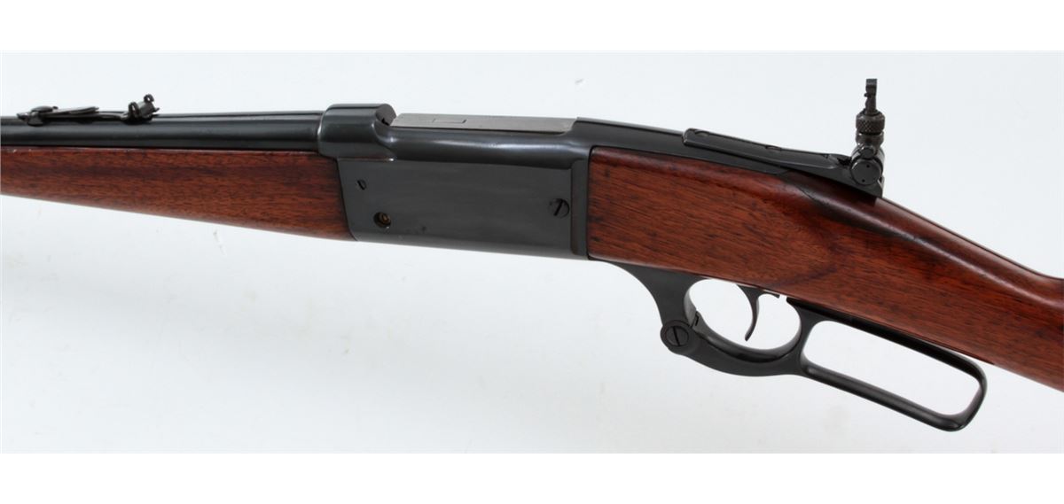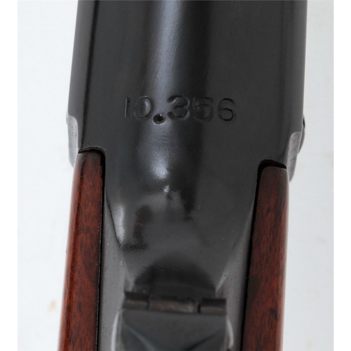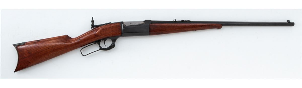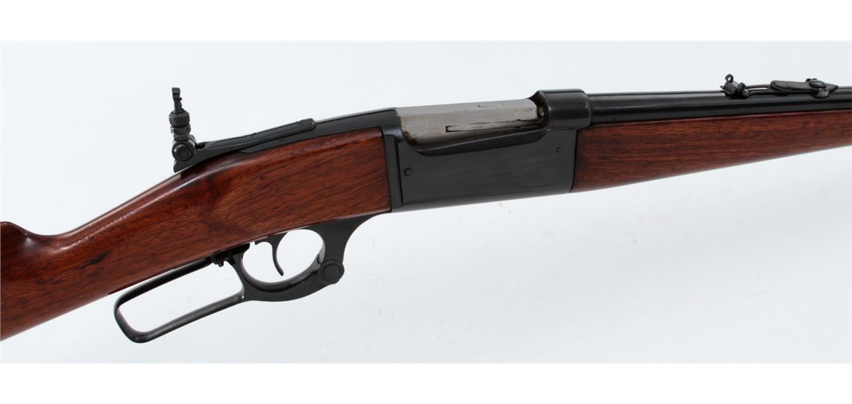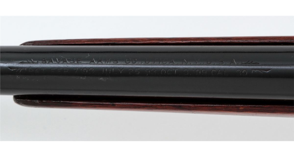 Savage Model 99 Lever Action Rifle, #10356, .30-30 cal., 22'' barrel, blue finish, walnut stock, with Lyman tang sight. Condition is very good to fine as refinished, retaining approx. 96% immersion type blue. Stock shows moderate sanding and revarnishing. Action is good, bore is fair. Est.: $200-$400. (C&R)