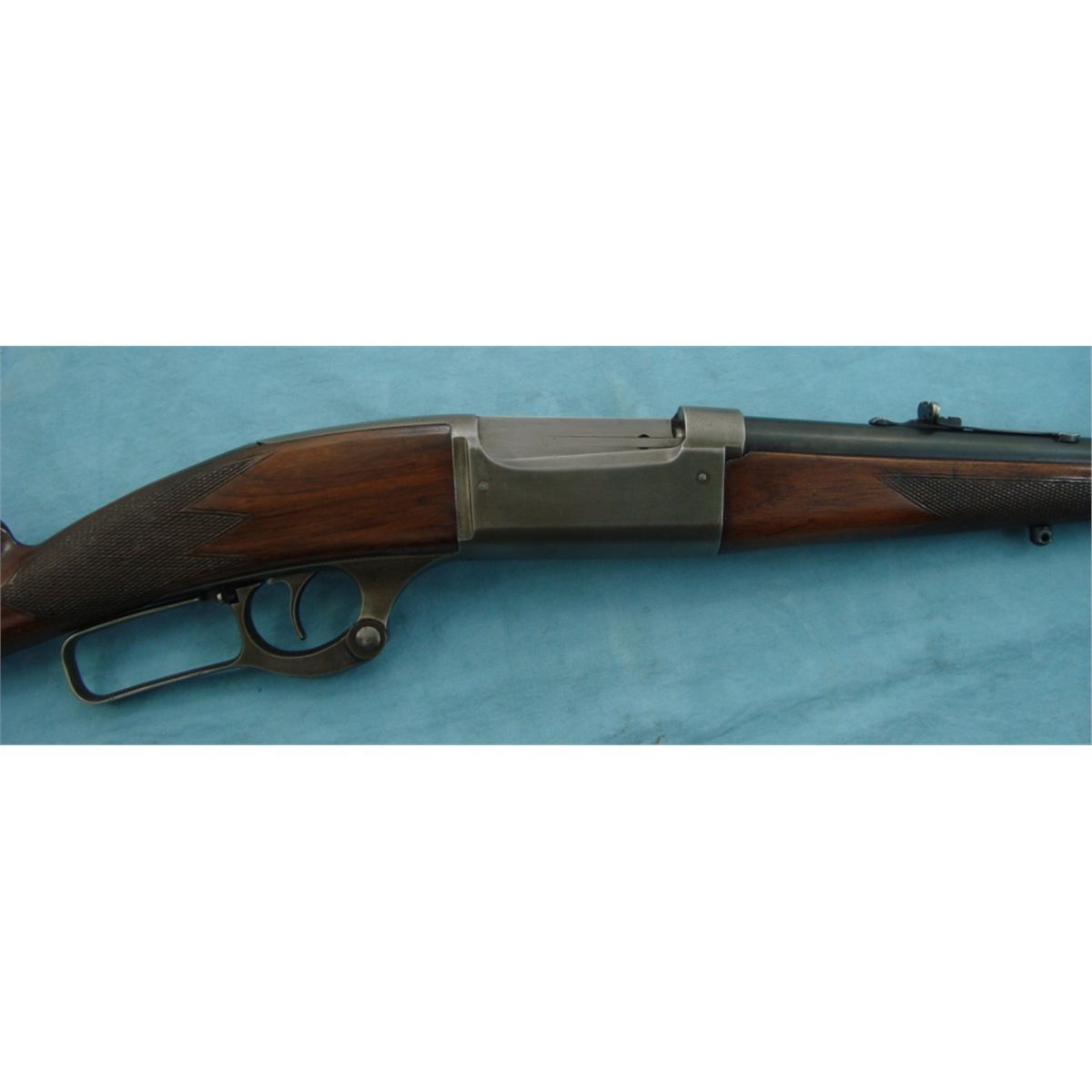 #40434; 303 SAV w/20" bbl. & good bore. Blue bbl. w/grey receiver. Stock is in good condition, but is crack at wrist & shows period repairs. White Line butt pad has been added. Gun is in good overall condition.