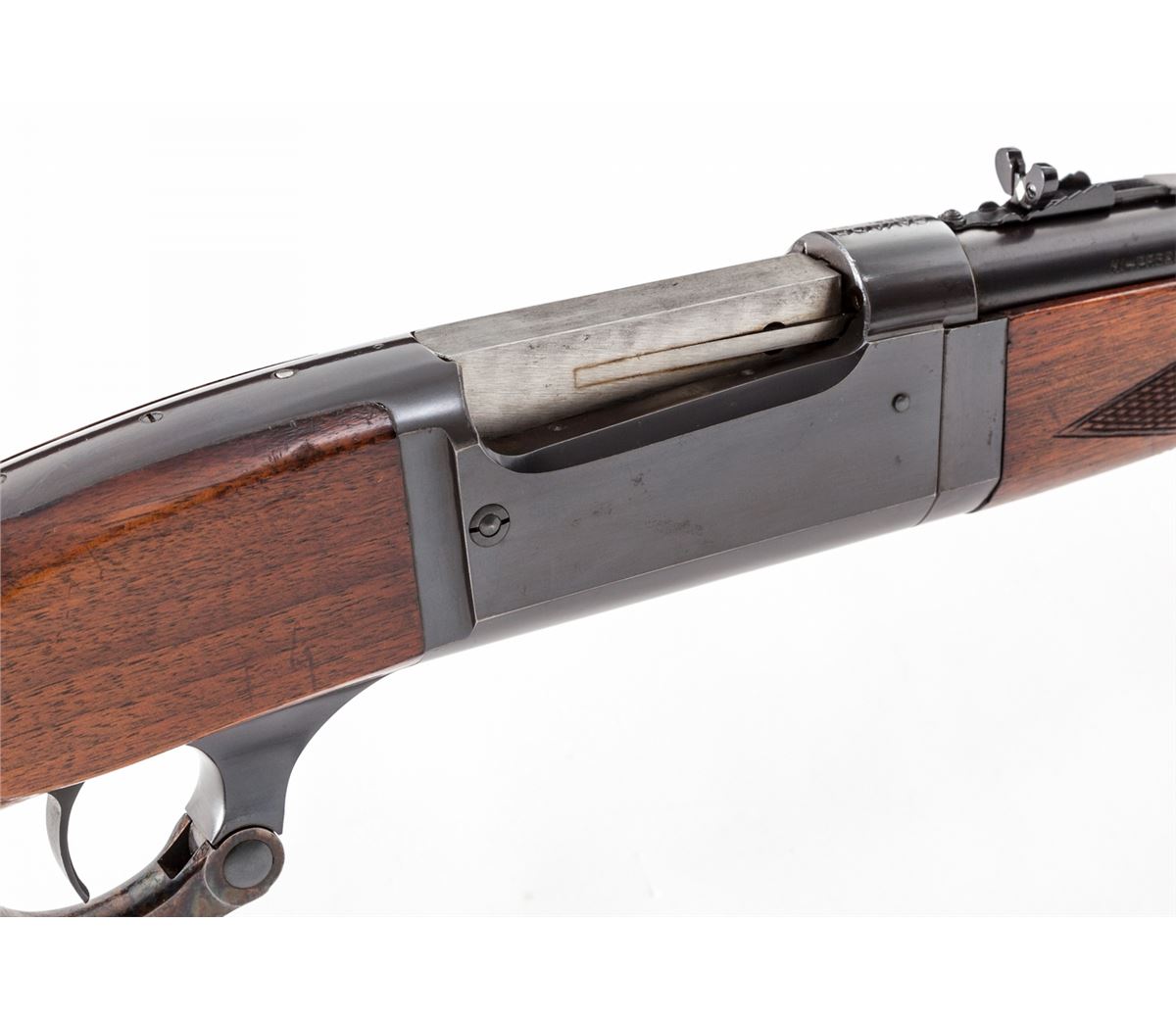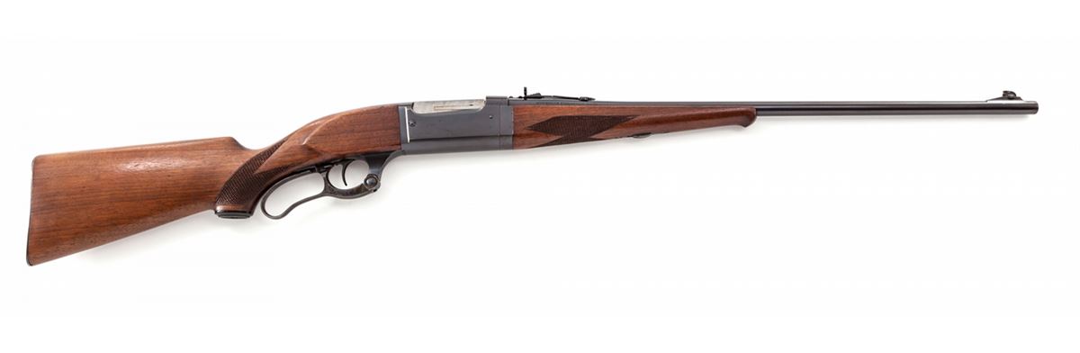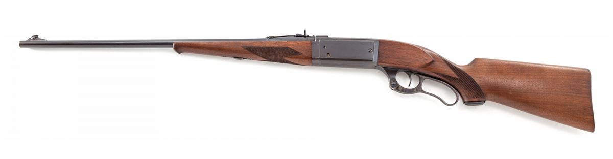 Savage Model 99 Takedown Lever Action Rifle, #321435, .300 Sav. cal., 24'' barrel, blue finish, case hardened lever, factory checkered walnut stock and handguard. Mfg'd 1929. Condition is excellent retaining approx. 97% blue. Stock with crisp checkering and repair to left side upper edge of forend. Action is good, bore is bright. Est.: $500-$750. (C&R)
