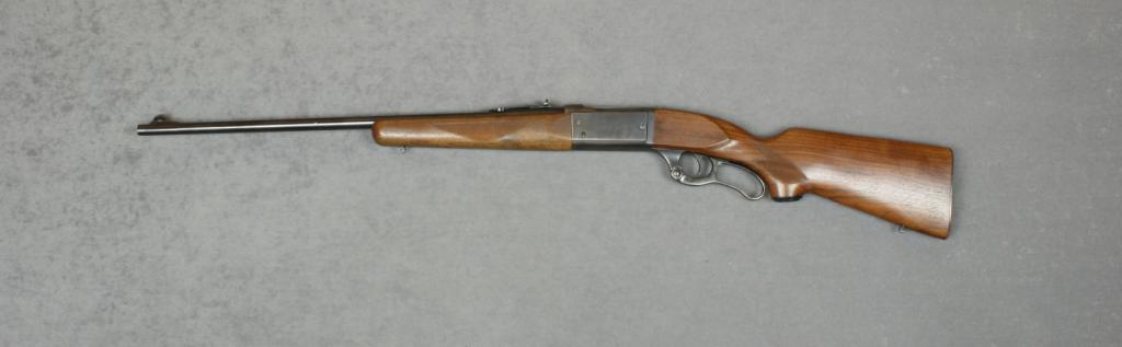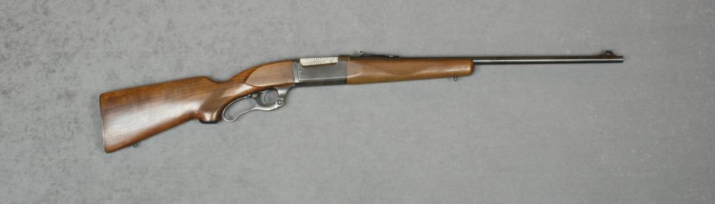 Savage Model 99 lever action rifle, .300 Savage cal., 24” round barrel, blue finish, checkered wood stock, #720094. This rifle is in overall excellent condition showing approx. 99% original finish, case counter,top of receiver tapped for sight mount, fine bore, action and markings, sling swivel eyelets, excellent wood stocks, steel butt plate; strong traces of factory case colors on lever. Est.: $350-$700.