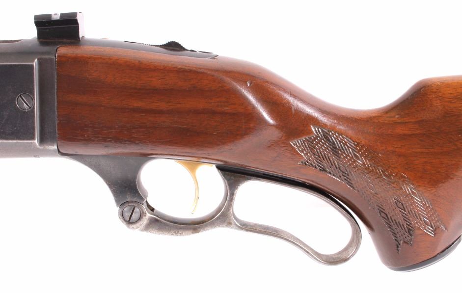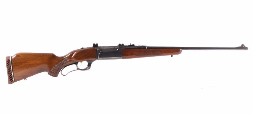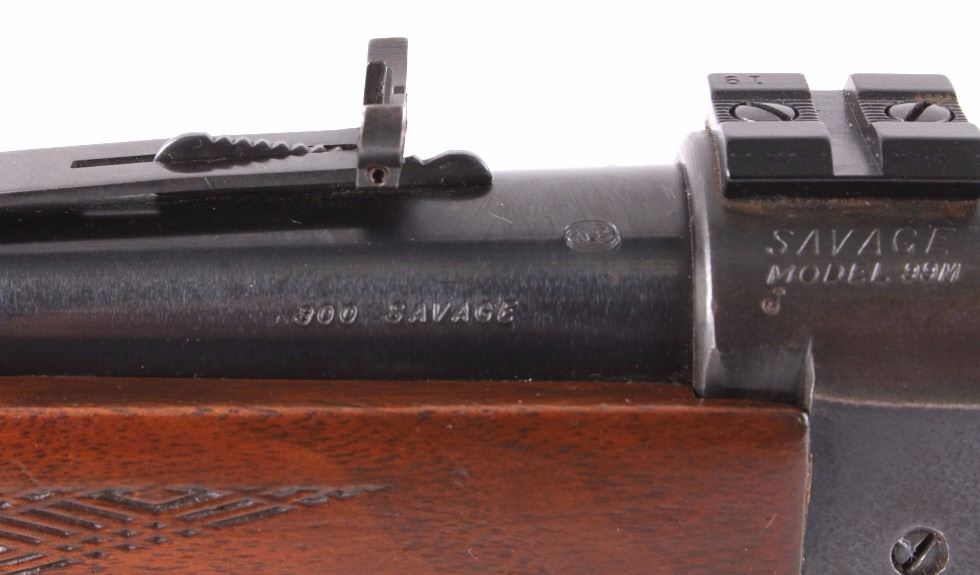 This is a Savage Model 99M lever action rifle chambered in the .300 Savage caliber. The rifle features a blued receiver, barrel and lever with solid walnut hardwood checkered stocks. The rifle has adjustable open sporting sights and is fitted with scope mounts. The barrel is marked "Savage Arms Westfield, Mass. U.S.A." and "Hi-Pressure Steel Proof Tested / .300 Savage". The receiver is marked "Savage Model 99M". The Savage rifle is in good condition. It measures 40.5" long with a 22" barrel. Serial number is 1102149 and was manufactured circa 1964. This firearm requires a Curio & Relic FFL, NICS background check or FFL transfer.