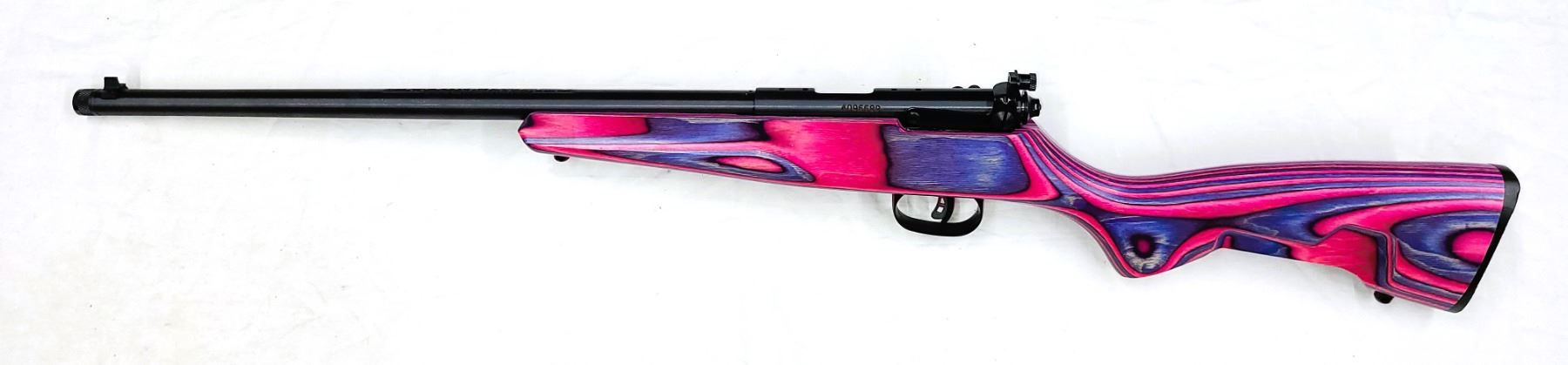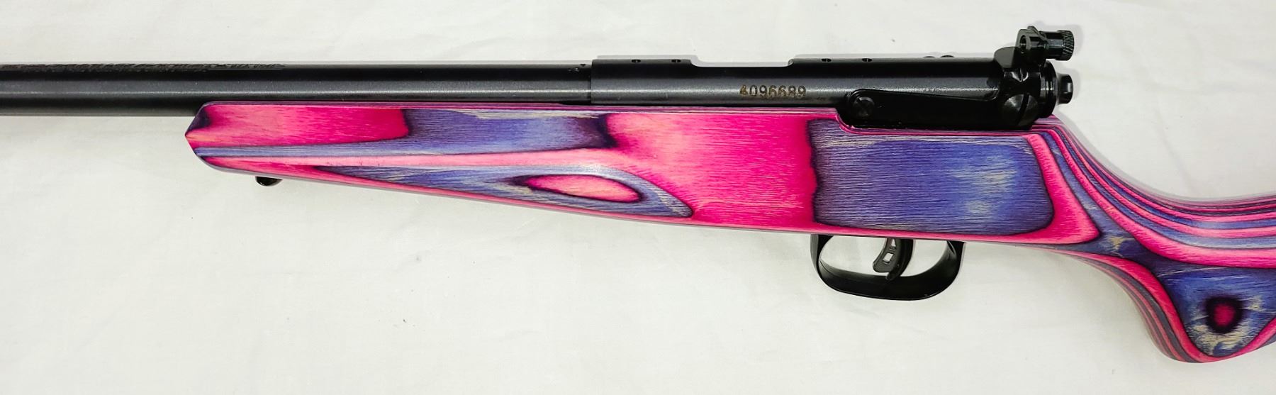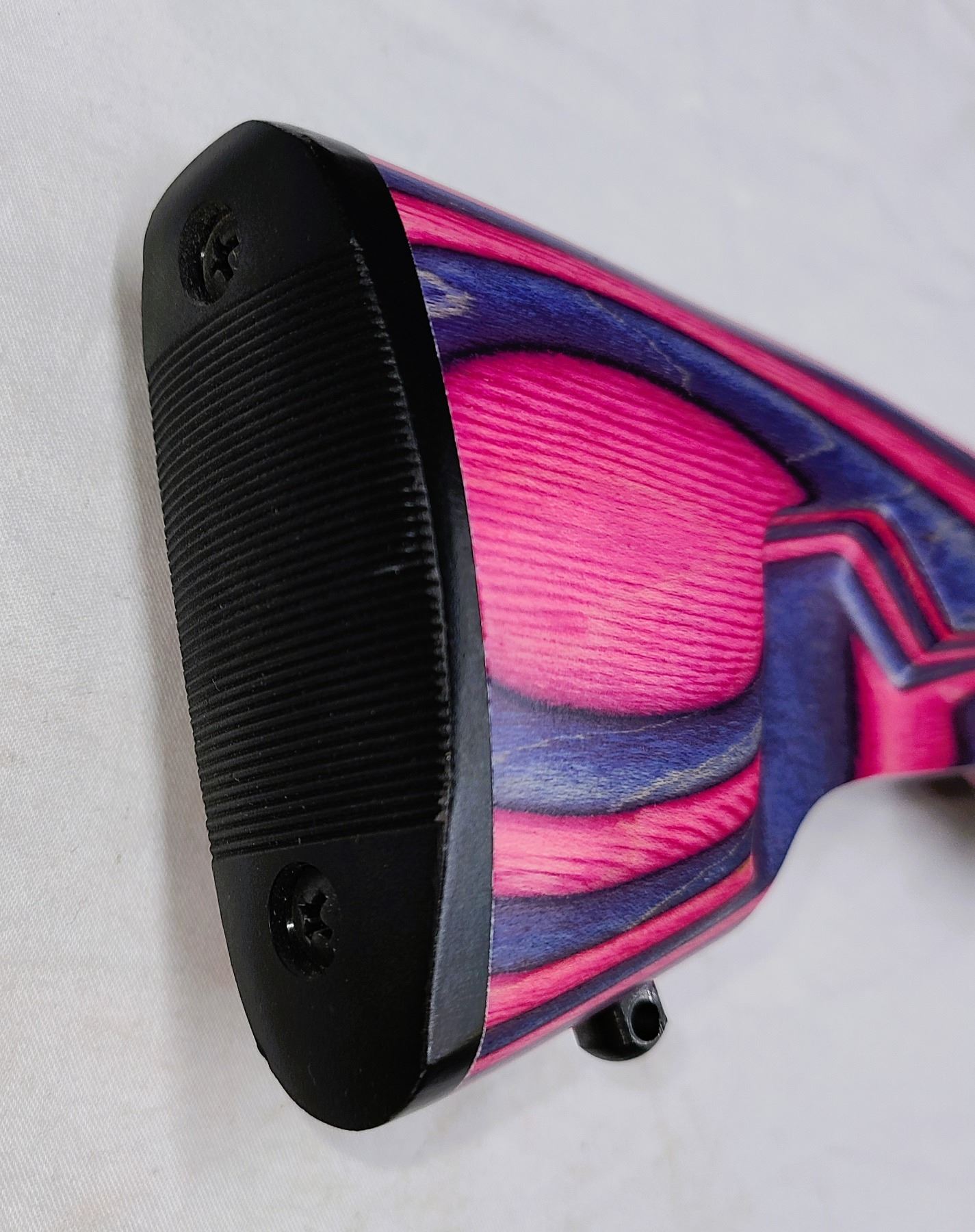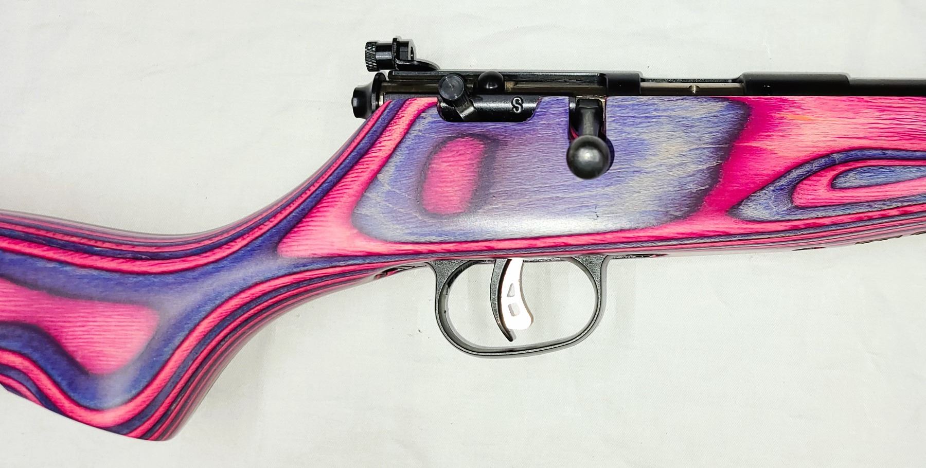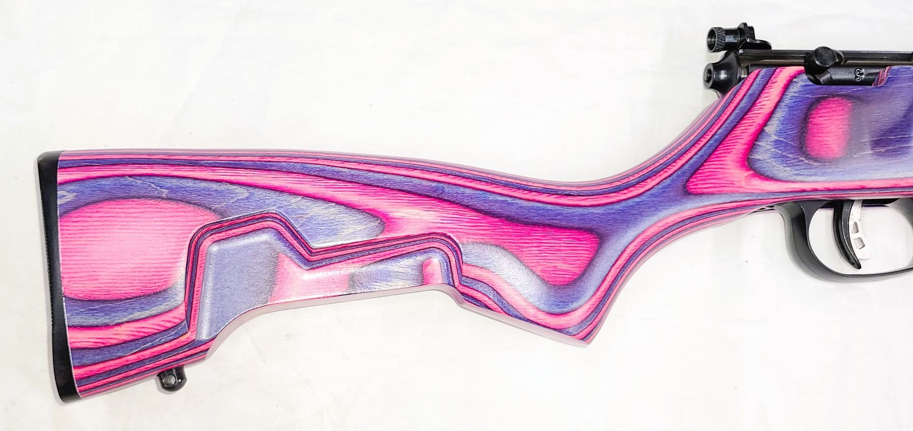 The new Rascal rifles stocks come in either pink and purple or teal and grey. This is the Purple & Pink version.