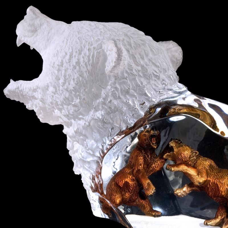 "Savage Spirit (Bears)" is a limited edition mixed media lucite sculpture by Kitty Cantrell. Engraved with the artists signature and number, this piece comes with a certificate of authenticity. Measures approximately 7" x 3" x 5". This item requires special handling and may have a longer than usual turnaround.