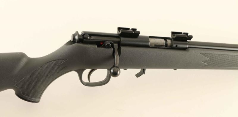 Bolt action rifle with 21"blued barrel, gray synthetic stock, scope mounts,no mag, bore is bright strong rifling. NRA Excellent Modern Firearm