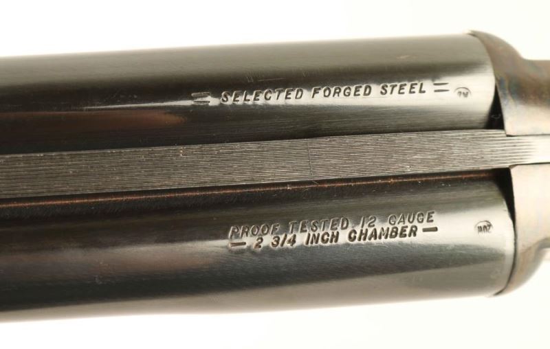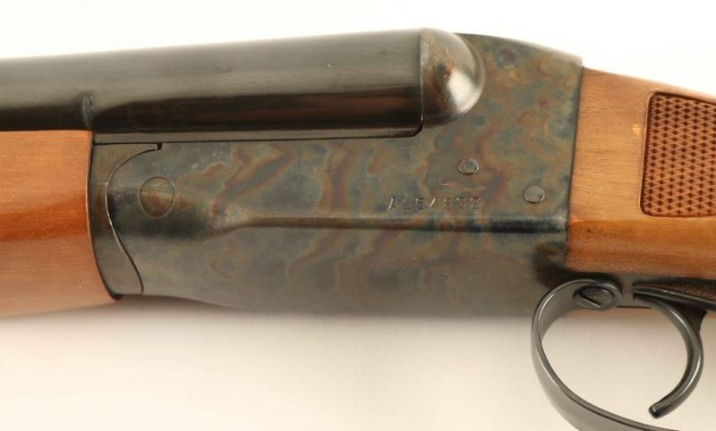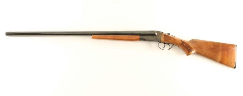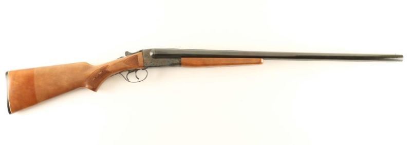 Side by side hammerless 12 Gauge shotgun with 28" blued barrels. Silver bead front sight, tang mounted safety, double triggers and a plastic buttplate. Color case hardened receiver. Light scratches on stock. NRA Very Good ***Modern Firearm***