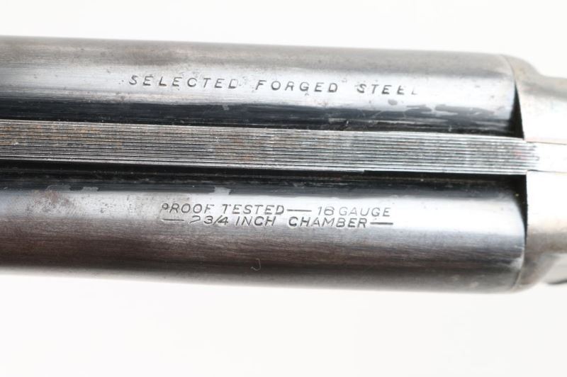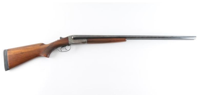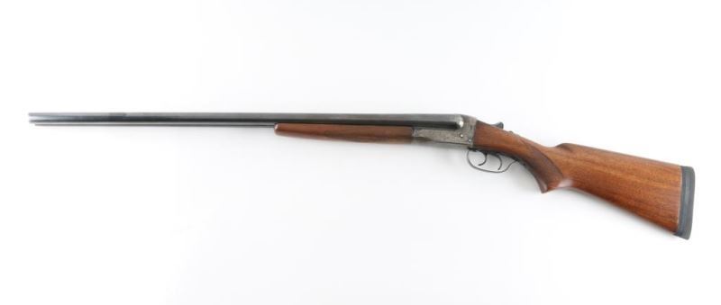 Double barrel side by side shotgun chambered for 16 gauge 2-3/4" shells. Features blued finish, case color receiver, wood forend & shoulder stock with pistol grip shape, shallow cross hatch checkering at wrist & forend, 28" barrels with fixed chokes (left barrel is MOD; right is Improved Cylinder), steel bead front sight, tang safety (automatically moves to safe on opening), top lever, double triggers, extractor, 14-1/8" length of pull to forward trigger, solid rubber butt pad. Bores are very good. Metal finish is 50% with much gray color or bare metal on barrels near breech, edge losses, patina across receiver showing as hazy finish on top of the case colors. Wood is very good condition with few scuffs & scratches. Butt pad is a fair fit, poor angle and shy of the wood at heel. Condition is NRA Good++ *** C&R Firearm ***