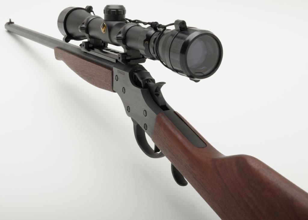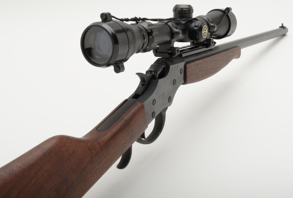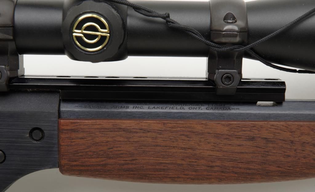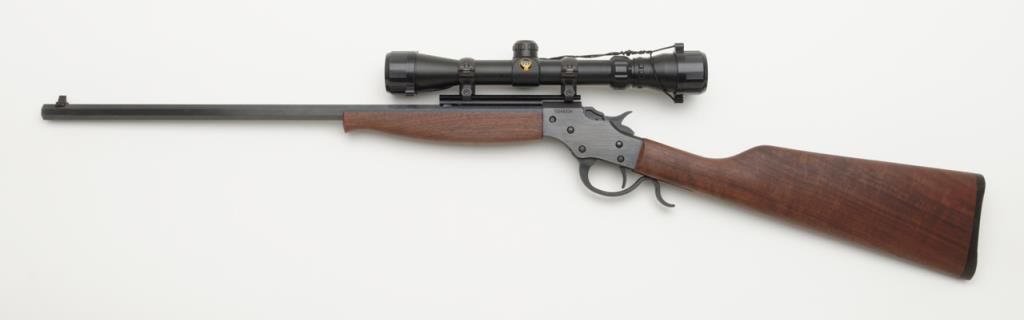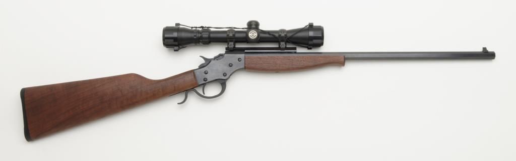 Savage – Stevens style falling blocks single shot rifle with octagon barrel in .22 long rifle caliber, serial number 0346334 in fine to near excellent used condition mounted with unidentified 3x to 9x power scope on rail mount. Est.: $125-$250