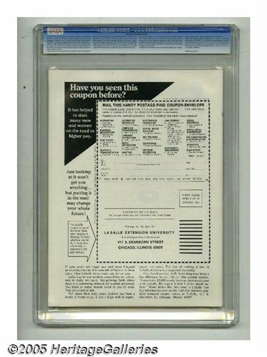 33.Exclusively Internet, CurrencyAuction.com, Amazing Comics Auctions™ and Bullet auctions: THREE (3) DAY RETURN POLICY. All lots (Exception: Third party graded notes are not returnable for any reason whatsoever) paid for within seven days of the auction closing are sold with a three (3) day return privilege. You may return lots under the following conditions: Within three days of receipt of the lot, you must first notify Auctioneer by contacting Customer Service by phone (1-800-872-6467) or e-mail (Bid@HeritageGalleries. com), and immediately mail the lot(s) fully insured to the attention of Returns, Heritage, 3500 Maple Avenue, 17th Floor, Dallas TX 75219-3941. Lots must be housed intact in their original holder and condition. You are responsible for the insured, safe delivery of any lots. A non-negotiable return fee of 5% of the purchase price ($10 per lot minimum) will be deducted from the refund for each returned lot or billed directly. Postage and handling fees are not refunded. After the three-day period (from receipt), no items may be returned for any reason. Late remittance for purchases revokes all Return-Restock privileges.