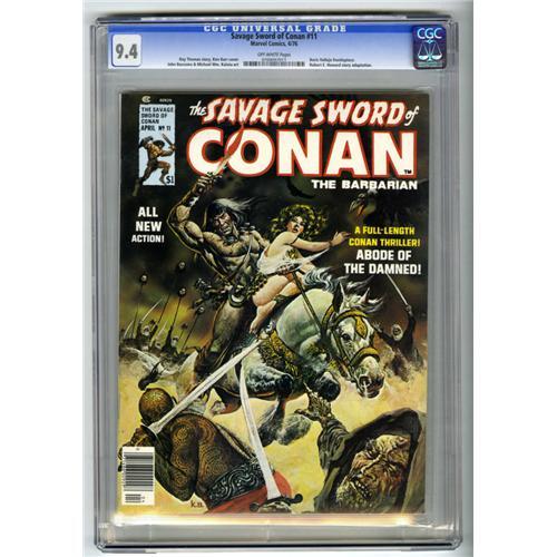 <B>Savage Sword of Conan #11 (Marvel, 1976) CGC NM 9.4 Off-white pages.</B></I> Ken Barr cover. John Buscema, Michael Kaluta, and Boris Vallejo art. Overstreet 2006 NM- 9.2 value = $16. CGC census 2/07: 4 in 9.4, none higher.<BR><BR><b>Shipping:</b> Comics - Slabbed (certified) (<a target="_blank" href="http://www.heritageauctions.com/common/shipping.php">view shipping information</a>)