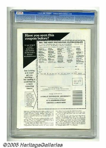 33.Exclusively Internet, CurrencyAuction.com, Amazing Comics Auctions™ and Bullet auctions: THREE (3) DAY RETURN POLICY. All lots (Exception: Third party graded notes are not returnable for any reason whatsoever) paid for within seven days of the auction closing are sold with a three (3) day return privilege. You may return lots under the following conditions: Within three days of receipt of the lot, you must first notify Auctioneer by contacting Customer Service by phone (1-800-872-6467) or e-mail (Bid@HeritageGalleries. com), and immediately mail the lot(s) fully insured to the attention of Returns, Heritage, 3500 Maple Avenue, 17th Floor, Dallas TX 75219-3941. Lots must be housed intact in their original holder and condition. You are responsible for the insured, safe delivery of any lots. A non-negotiable return fee of 5% of the purchase price ($10 per lot minimum) will be deducted from the refund for each returned lot or billed directly. Postage and handling fees are not refunded. After the three-day period (from receipt), no items may be returned for any reason. Late remittance for purchases revokes all Return-Restock privileges.