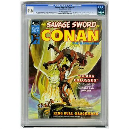 <B>Savage Sword of Conan #2 (Marvel, 1974) CGC NM+ 9.6 Off-white to white pages.</B></I> Neal Adams cover. John Buscema, Alfredo Alcala, Howard Chaykin, and Gil Kane art. Overstreet 2007 NM- 9.2 value = $65. CGC census 9/07: 12 in 9.6, 3 higher.<BR><BR><b>Shipping:</b> Comics - Slabbed (certified) (<a target="_blank" href="http://www.heritageauctions.com/common/shipping.php">view shipping information</a>)