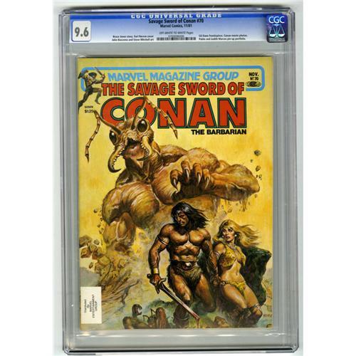<B>Savage Sword of Conan #70 (Marvel, 1981) CGC NM+ 9.6 Off-white to white pages.</B></I> Earl Norem cover. John Buscema, Gil Kane, and Pablo Marcos art. Overstreet 2006 NM- 9.2 value = $8. CGC census 2/07: 3 in 9.6, 2 higher.<BR><BR><b>Shipping:</b> Comics - Slabbed (certified) (<a target="_blank" href="http://www.heritageauctions.com/common/shipping.php">view shipping information</a>)