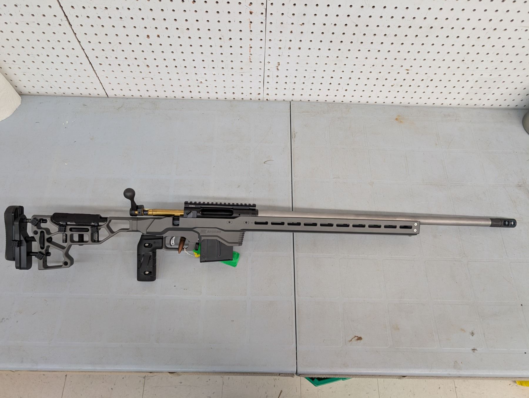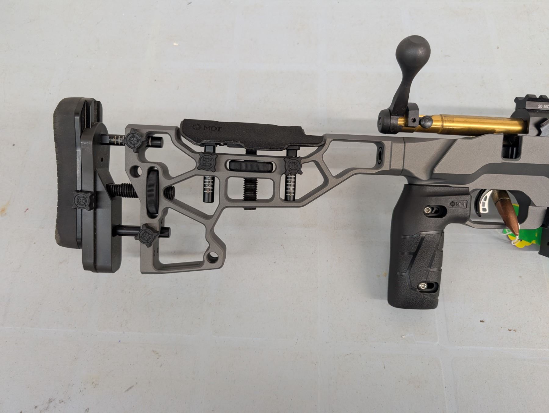 Bolt action. heavy threaded 26" bull barrel w/muzzle brake. bore excellent condition, function is excellent. Stock is MDT ACC chassis in immaculate condition.