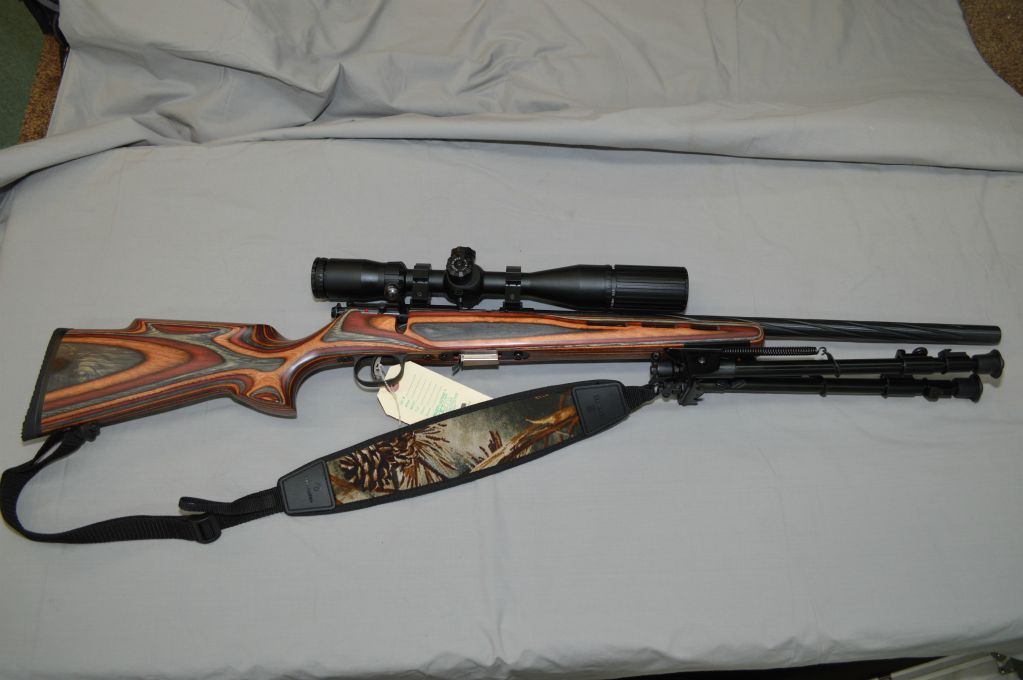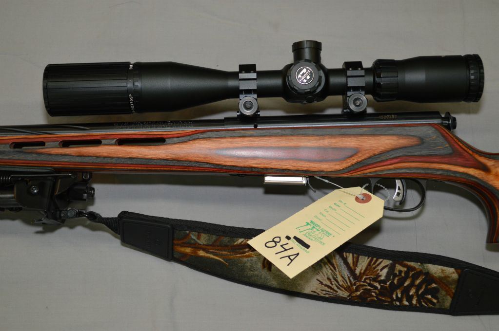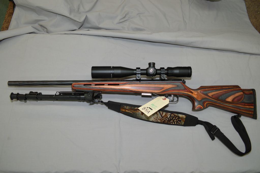 Savage model 93R17 caliber .17HMR bolt action repeating rifle with custom wood, BSA scope, folding bipod and sling appears as new 21" bbl Ser# 1630397