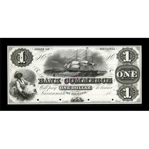 <B>Savannah, GA- Bank of Commerce</B></I> $1 UNL Proof<BR> An ex-ABNCo holdings Proof with one miniscule and barely detectible repair on the bottom right corner. <B>Uncirculated, </B></I>4 POC.<BR><I>From The Collection of a Louisiana Gentleman.</B></I><BR><BR><b>Shipping:</b> Coins & Currency (<a target="_blank" href="http://www.heritageauctions.com/common/shipping.php">view shipping information</a>)