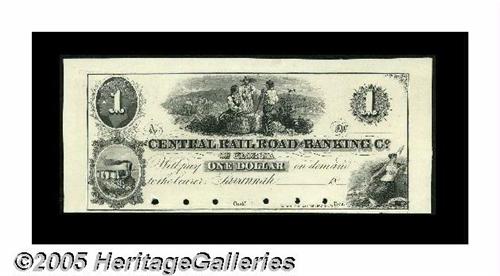 <B>Savannah, GA- Central Rail Road & Banking Co. of Georgia</B></I> $1 Proof<BR>An attractive Proof example on card stock which did not come from the American Bank Note Co. archives sale. <B>Uncirculated,</B></I> with 6 POC, rare enough to reach or exceed...