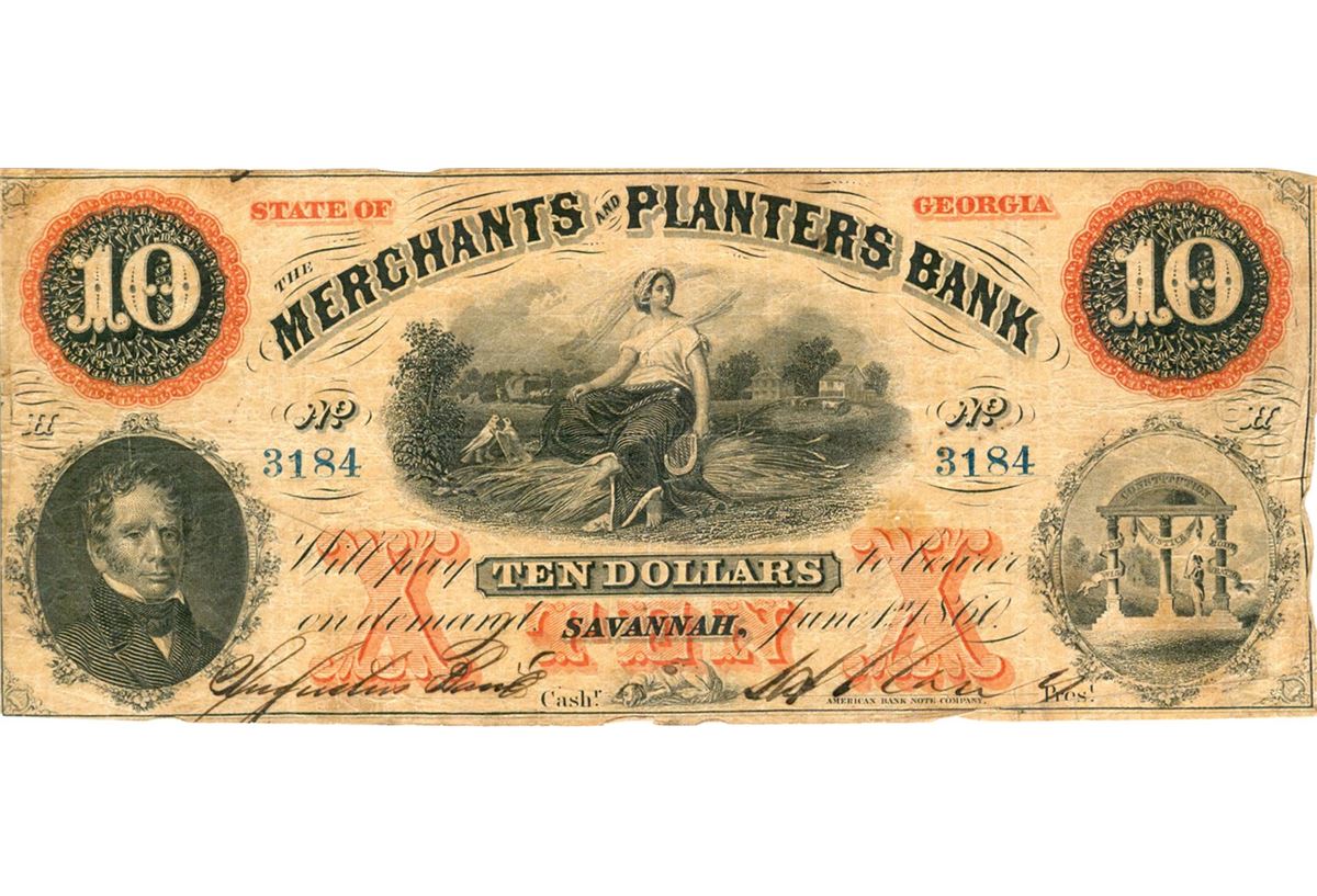 Savannah, Georgia The Merchants and Planters $10 Note.