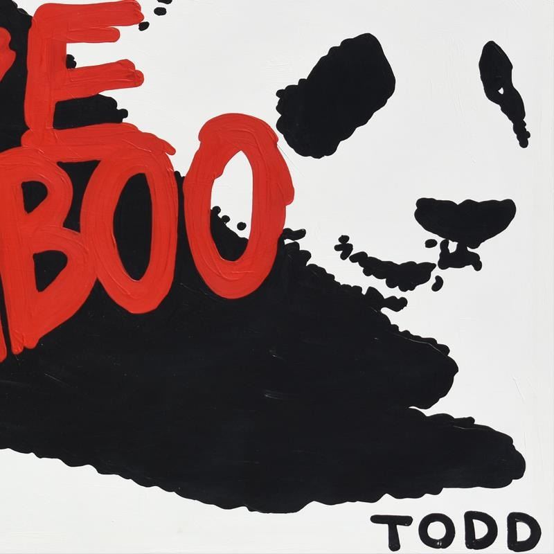 "Save Bamboo" is an original acrylic painting on gallery wrapped canvas by Todd Goldman, hand signed by the artist. Includes Letter of Authenticity. Measures approx. 60" x 48" (image). Due to the way this piece was stored there may be minor wear or signs