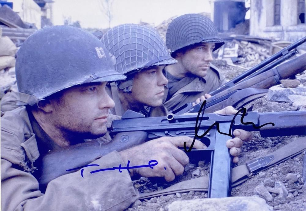 Saving Private Ryan facsimile signed movie photo autographed by Matt Damon and Tom Hanks. 8x10 inches. This item is a reprint of an original autograph