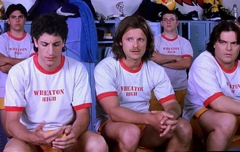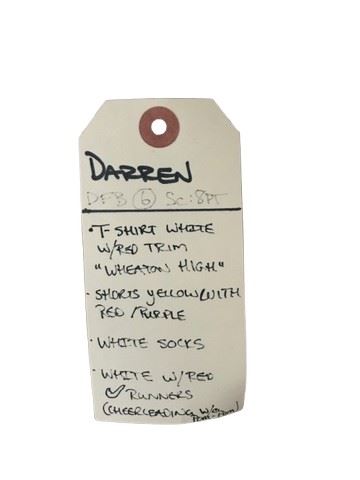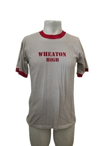 Saving Silverman - Darren's (Jason Biggs) screen worn, Wheaton High, custom-made, ringer T-shirt, in white with red trim. Size medium. Includes costume department wardrobe tag.
