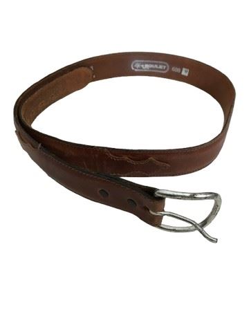 Saving Silverman (2001) - Wayne's (Steve Zahn) screen worn, short sleeve, casual, "Arnold Palmer" gray/tan seersucker button down shirt (15.5) with a brown leather belt and a rust and brick colored cotton coat with patch pockets. Includes costume department wardrobe tag.