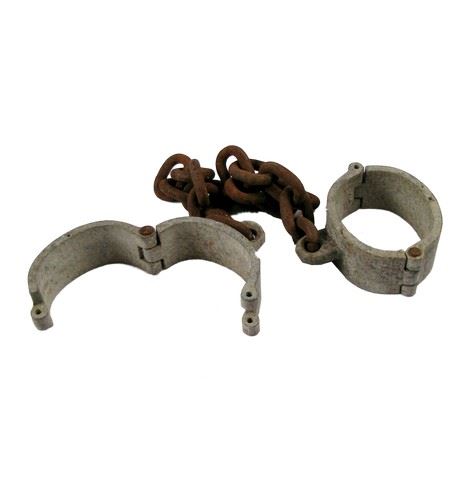 From the surefire hit movie franchise Saw III (2006) is this production rusted metal heavy chain ankle cuffs. These were used in the making of the film and are perfect for all SAW fans!