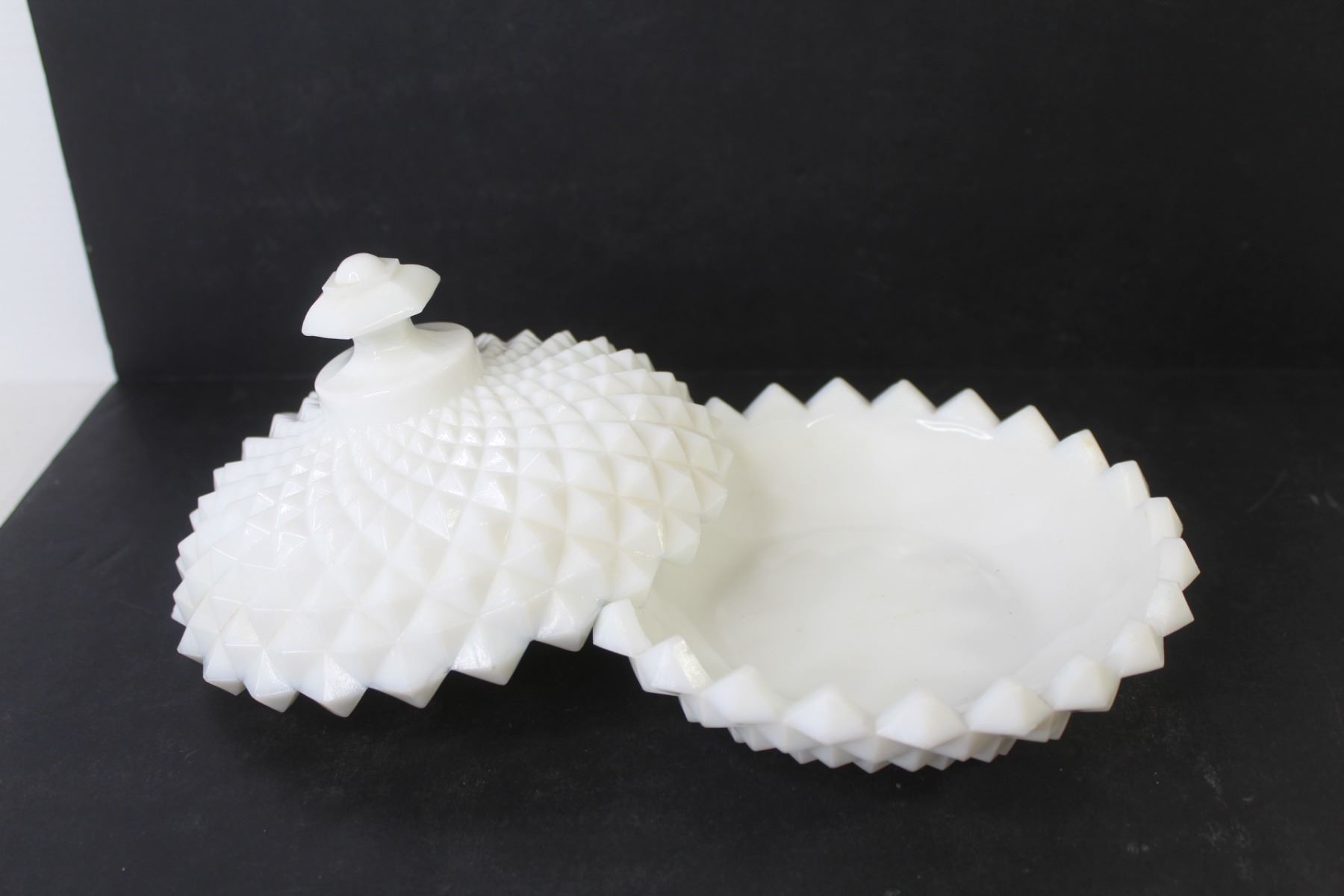 Saw Tooth 6" Milk Glass Dish (slight chipping inside edge)