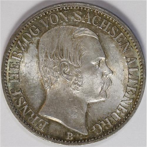 <B>Saxe-Altenburg. Ernst I Vereinstaler 1869-B, </B></I>KM-C16, superb UNC with frosty white mint brilliance and soft green and gold patina - an exceptional coin with undeniable eye appeal.