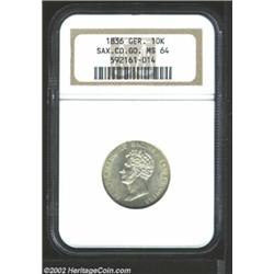 Saxe-Coburg-Gotha. Ernst I 10 kreuzer 1836, Head left/Crowned arms in wreath with date and value below, KM-94b, MS64 NGC. Lustrous white. Important notice: We expect to be auctioning lots at the rate of 200-250 per hour. Sometimes eBay Premier live bid software cannot keep up with that pace, so we strongly recommend that you place a realistic proxy bid now as insurance to avoid disappointment. Also please note that all Heritage/CAA lots purchased through eBay Premier carry a 20% Buyer's Premium. Please make sure you read the Terms and Conditions.