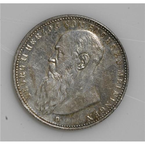 Saxe-Meiningen. Georg II 2 Mark 1902-D Short Beard, KM1