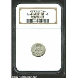 Saxe-Weimar. 6 Pfennig 1758, MS63 NGC. C15. Nearly fully lustrous. Important notice: We expect to be