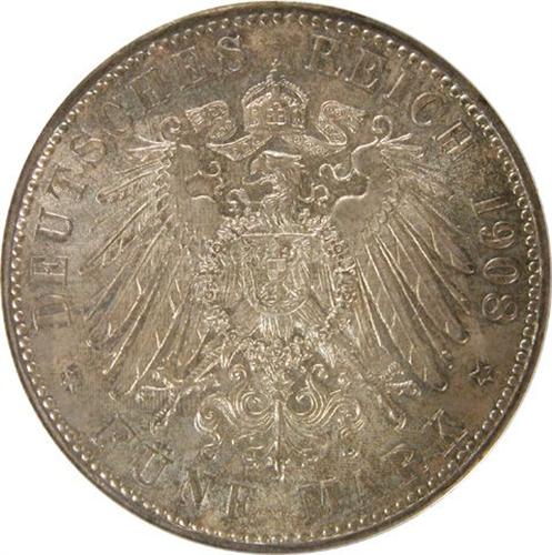 5 Marks 1908 Jena University ICG MS-66. A superbly lustrous, pale golden toned piece