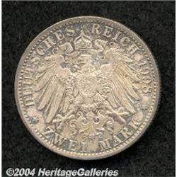 <B>Saxe-Weimar. Jena University 2 Mark 1908,</B></I> KM174 toned UNC. <BR><BR><B>Important notice:</B> Heritage usually auctions material at the rate of 200-250 lots per hour. On some occasions eBay Live bid software or the Internet may not be able to keep up with the pace of the auction. We recommend placing a realistic absentee bid now as insurance to avoid disappointment. Occasionally the auctioneer may eliminate or reject an eBay Live bid, and the auctioneer may also reopen a lot after the close of the eBay live bidding (usually because we missed an audience bid), and may reject your bid even if it shows you as the winning bidder. By bidding via eBay Live, you agree that Heritage may award the lot to another bidder at its sole discretion under the circumstances described above or any other reasonable circumstances. Since eBay bids are not shown to us until we open the lot on the floor, we treat those bids just like floor bids. In most cases the floor responds before the eBay bid is presented to us, due to Internet lag time, so for consistency we have made it a policy that floor bids are always considered first over tie eBay live bids. Also please note that all Heritage lots purchased through eBay Live carry a 20% Buyer's Premium. Please make sure you read the Terms and Conditions before you bid.