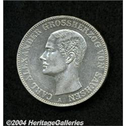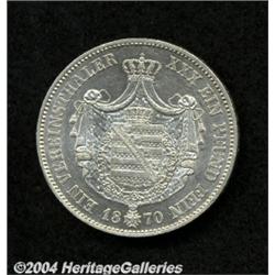 <B>Saxe-Weimar. Taler 1870,</B></I> Cr-93 BU. <BR><BR><B>Important notice:</B> Heritage usually auctions material at the rate of 200-250 lots per hour. On some occasions eBay Live bid software or the Internet may not be able to keep up with the pace of the auction. We recommend placing a realistic absentee bid now as insurance to avoid disappointment. Occasionally the auctioneer may eliminate or reject an eBay Live bid, and the auctioneer may also reopen a lot after the close of the eBay live bidding (usually because we missed an audience bid), and may reject your bid even if it shows you as the winning bidder. By bidding via eBay Live, you agree that Heritage may award the lot to another bidder at its sole discretion under the circumstances described above or any other reasonable circumstances. Since eBay bids are not shown to us until we open the lot on the floor, we treat those bids just like floor bids. In most cases the floor responds before the eBay bid is presented to us, due to Internet lag time, so for consistency we have made it a policy that floor bids are always considered first over tie eBay live bids. Also please note that all Heritage lots purchased through eBay Live carry a 20% Buyer's Premium. Please make sure you read the Terms and Conditions before you bid.