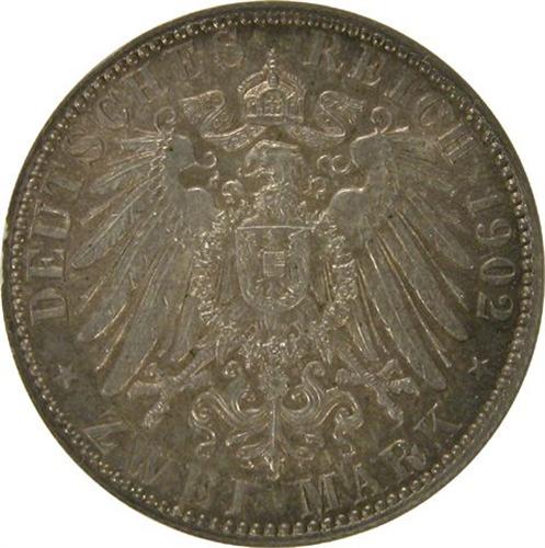 2 Marks 1902E Death of King Albert NGC MS-66. A fully struck and superbly lustrous piece with attractive toning in light-medium golden ambers